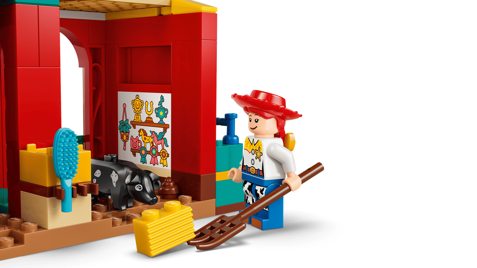• CHARACTERS AND FEATURES – Featuring LEGO® ǀ Disney and Pixar characters Woody, Jessie, Bullseye the horse, Blaze’s pet pig, plus a pony and a winged horse with removable wings