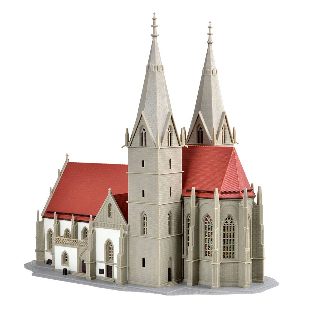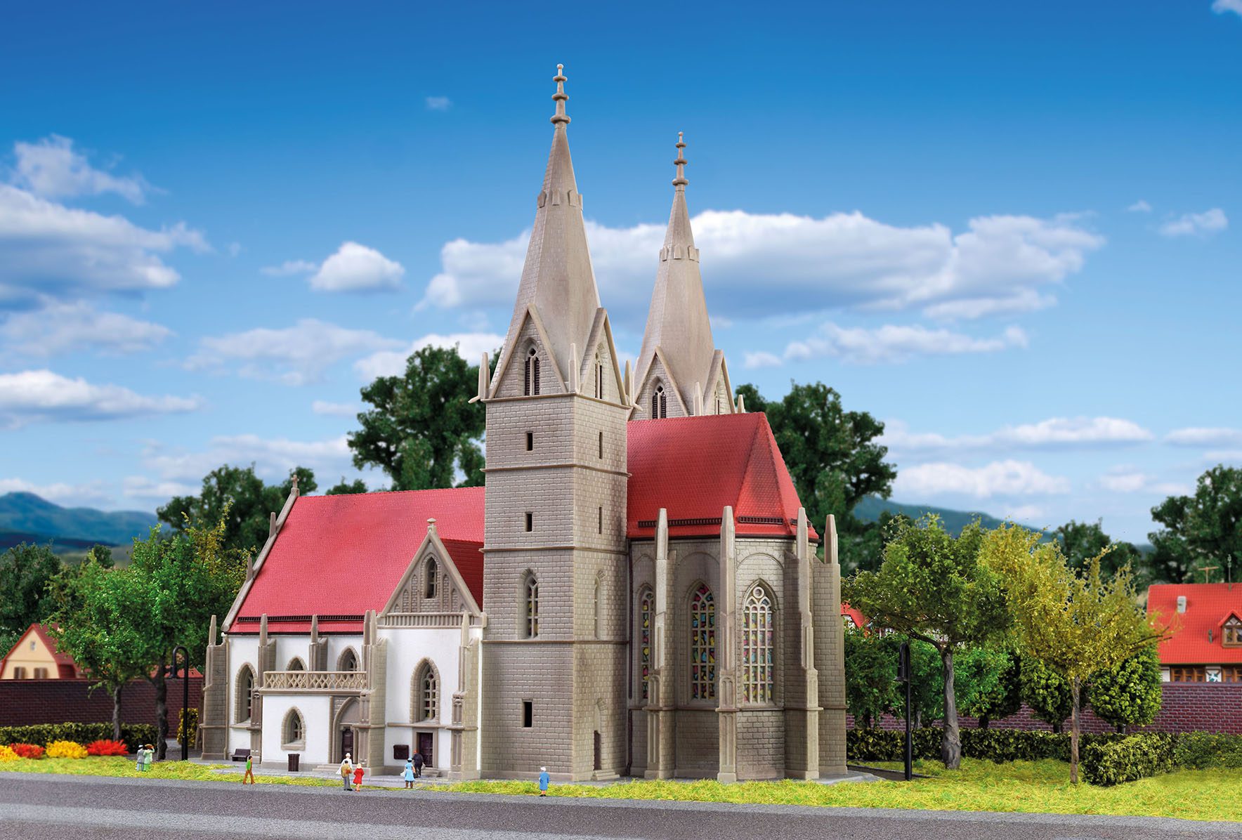 • The city church Oberhofen-Göppingen wonderfully fits the kibri settlement and town houses.