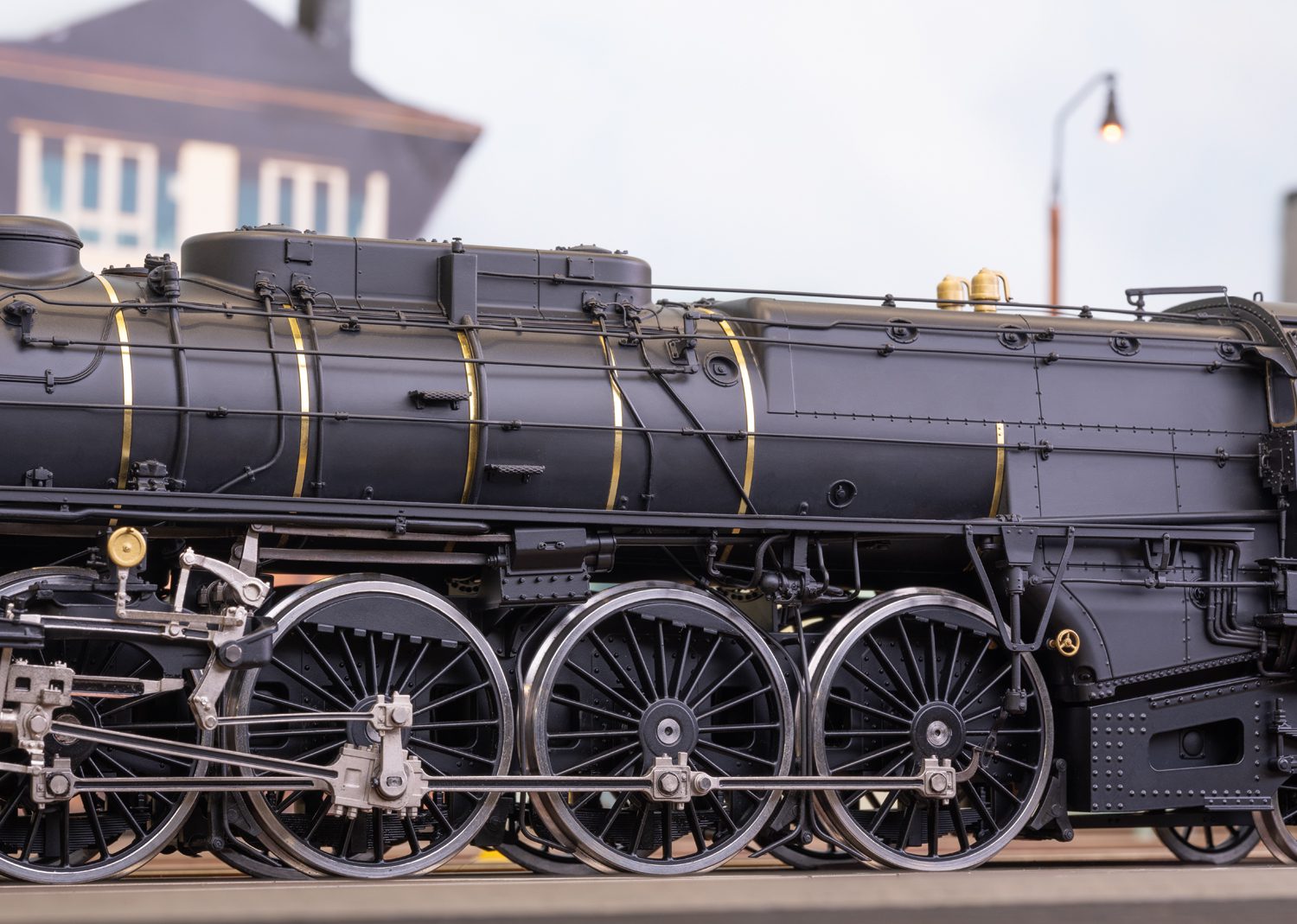 The locomotive is constructed of metal. It has a frame, superstructure with boiler, and cab constructed of die-cast zinc. Other separately applied parts are mostly constructed of brass. This is a highly detailed model with many separately applied parts and a very detailed engineer’s cab. The sand hatch can be opened as can the smoke box door with central locking. The cab doors and much more can be opened. The locomotive has an mfx digital decoder with 32 functions, controlled high efficiency propulsion, and a sound generator with operating sounds synchronized with the wheels as well as extensive sound functions. It can be operated with AC power, DC power, Märklin Digital, and DCC. The locomotive has a built-in buffer capacitor. All driving axles powered. The locomotive has a built-in smoke unit with smoke exhaust synchronized with the wheels, multiple step cylinder steam, and a steam whistle. The locomotive has dual headlights with a light color correct for the era and that change over with the direction of travel. The headlights will work in conventional operation and can be controlled digitally. Maintenance-free, warm white LEDs are used for the lighting.