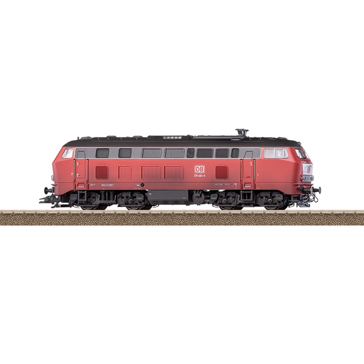 German Railroad, Inc. (DB AG) class 218 diesel locomotive. Orient red basic paint scheme. Road number 218 464-6. The locomotive looks as it did starting in 1999.