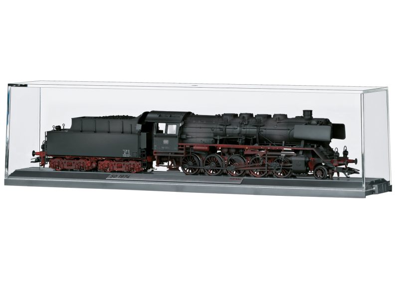 The locomotive is carefully weathered by hand. The model is presented with a display case made of clear acrylic. The base has your personal nameplate made of metal with the date of your 50th birthday.