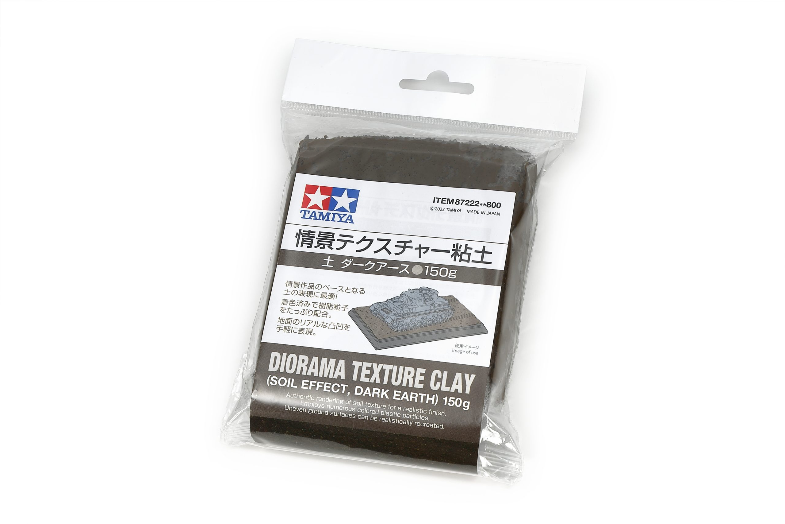 ★This clay will work wonders on your static model dioramas! ★Colored particles in the clay give a hugely realistic soil-like effect with authentic bumps and hollows. ★It is a water-based substance that gives off minimal smell and dirties hands little. ★Well-suited to use in scales between 1/12 and 1/48. ★The pack contains enough clay to cover a B5-sized base to a depth of 5mm.