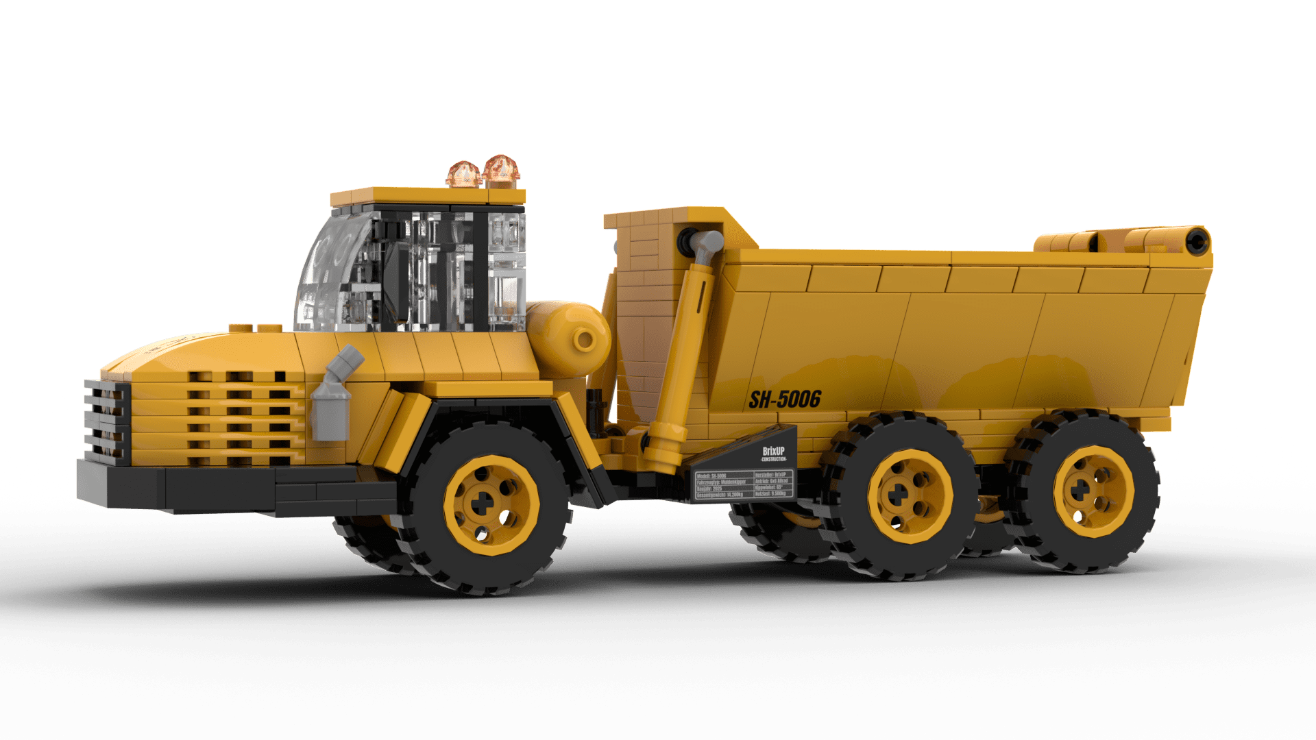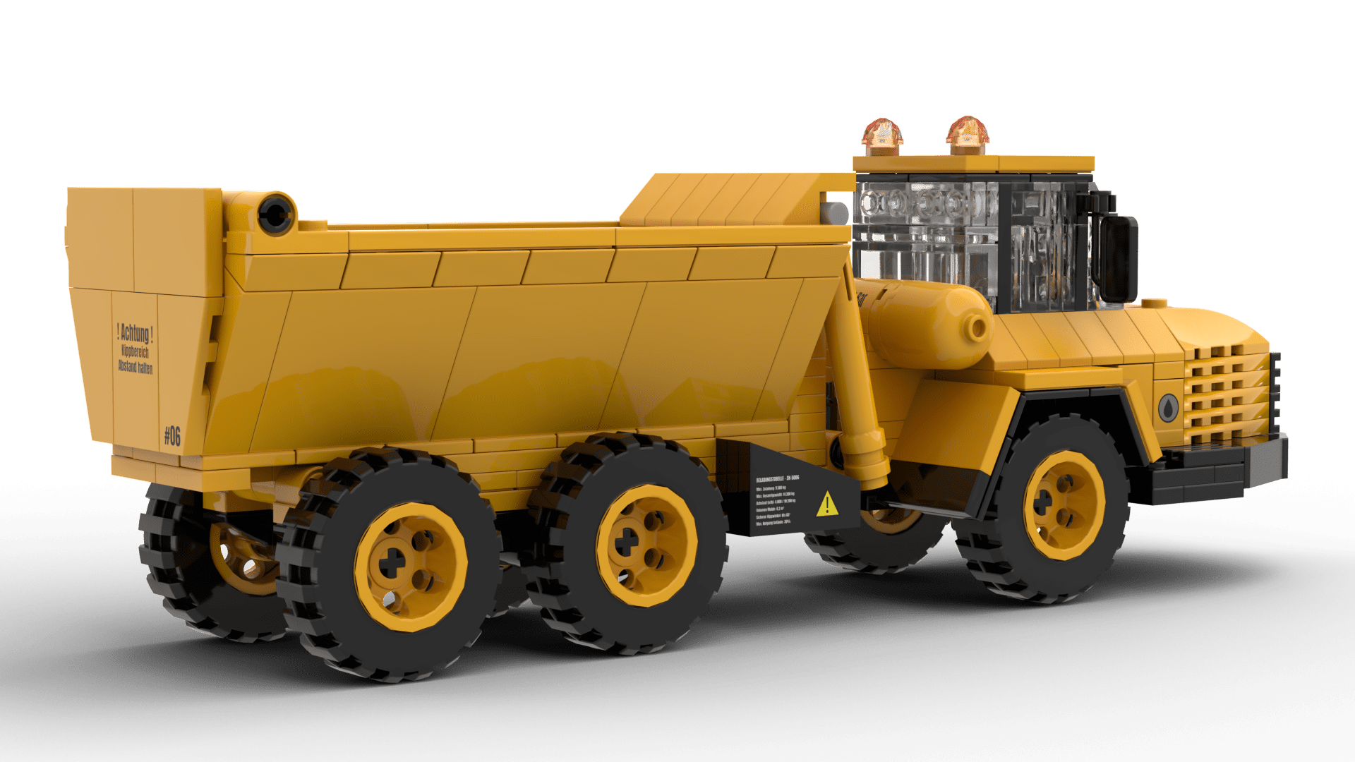 The dump truck as a building block model impresses with a tilting bed and movable wheels, making it perfect for transporting rubble and materials on construction sites. A true must-have for any construction vehicle collection.