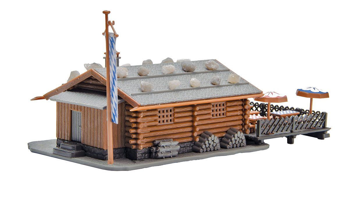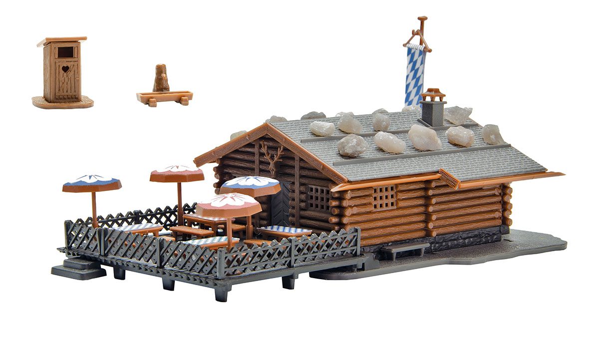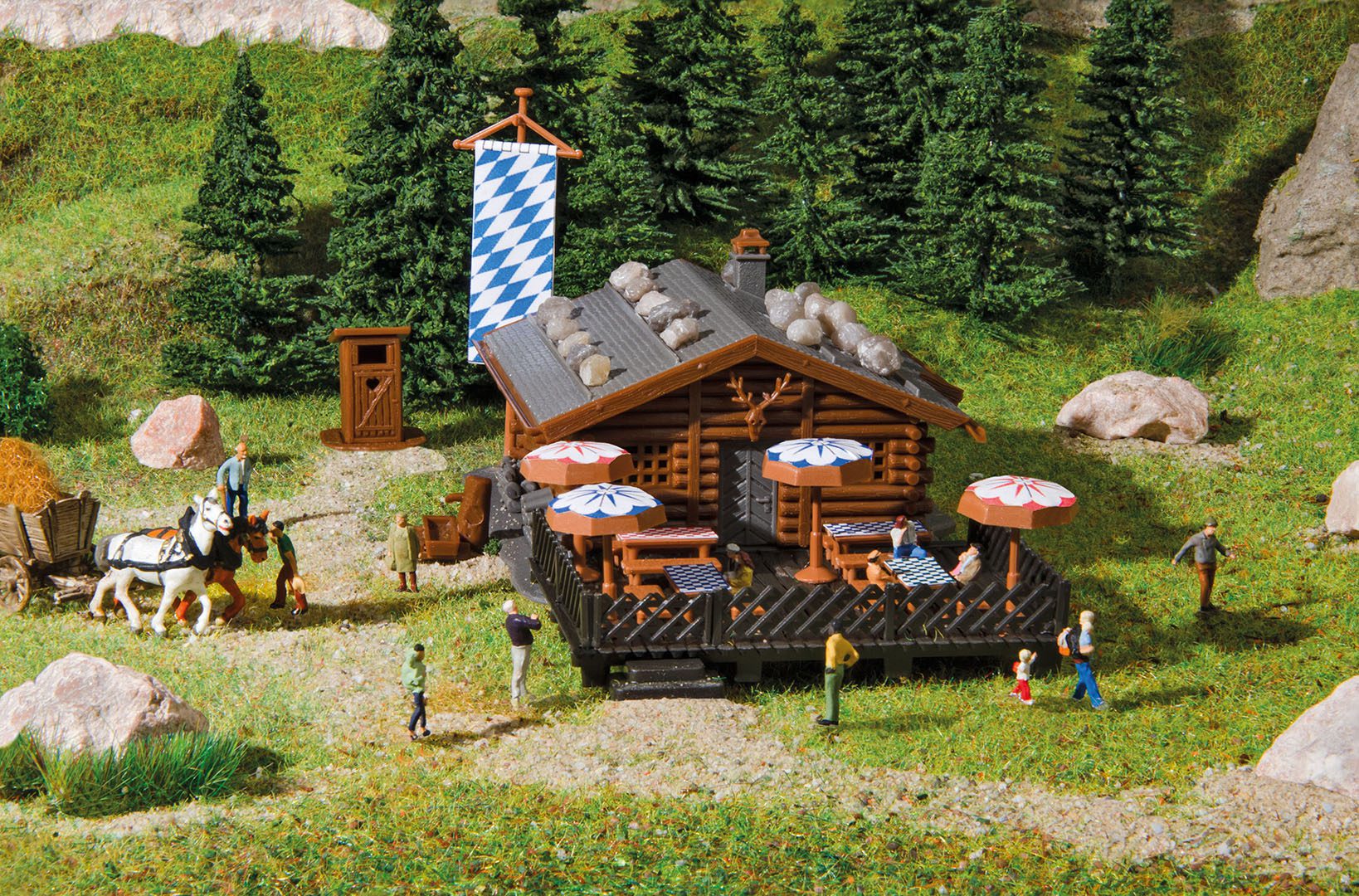 This building with a lot accessories is an eye-catcher. Tables, seating benches, restroom, fountain and some small items give alpine atmosphere. Dimensions: L 12,3 x W 6,5 x H 5,5 cm.
