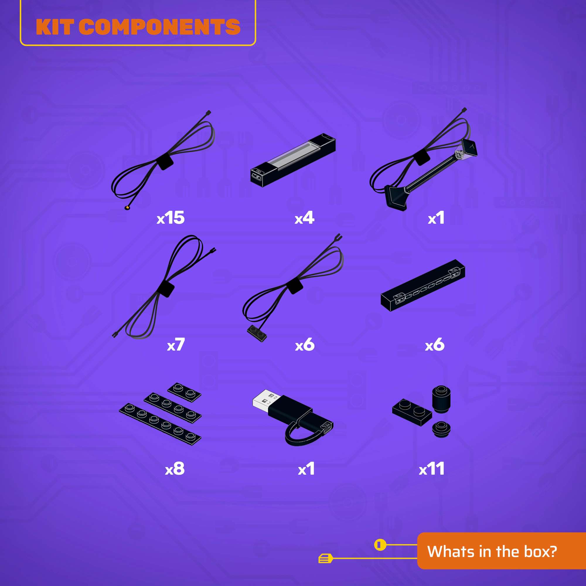 - All component casing and housing has been designed to connect seamlessly onto the LEGO® stud system, with LEGO® dimensional parts.