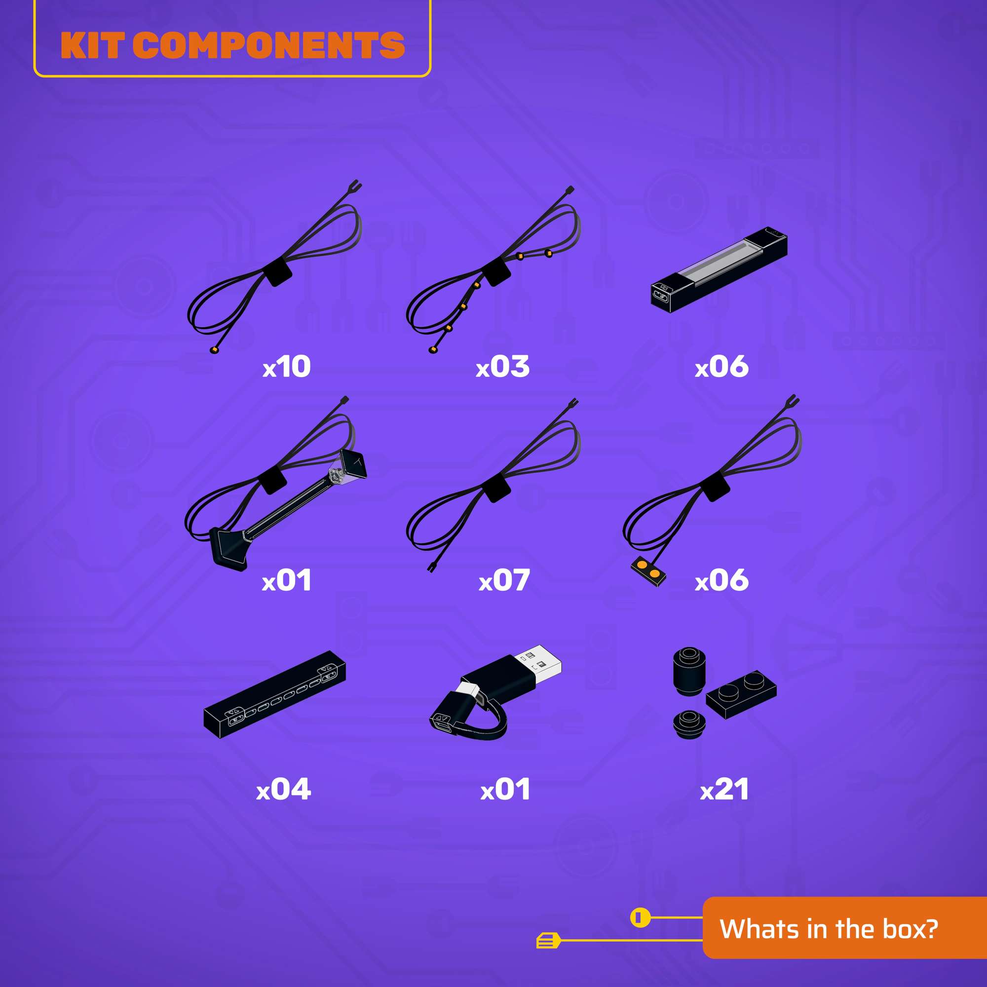 - All component casing and housing has been designed to connect seamlessly onto the LEGO® stud system, with LEGO® dimensional parts.