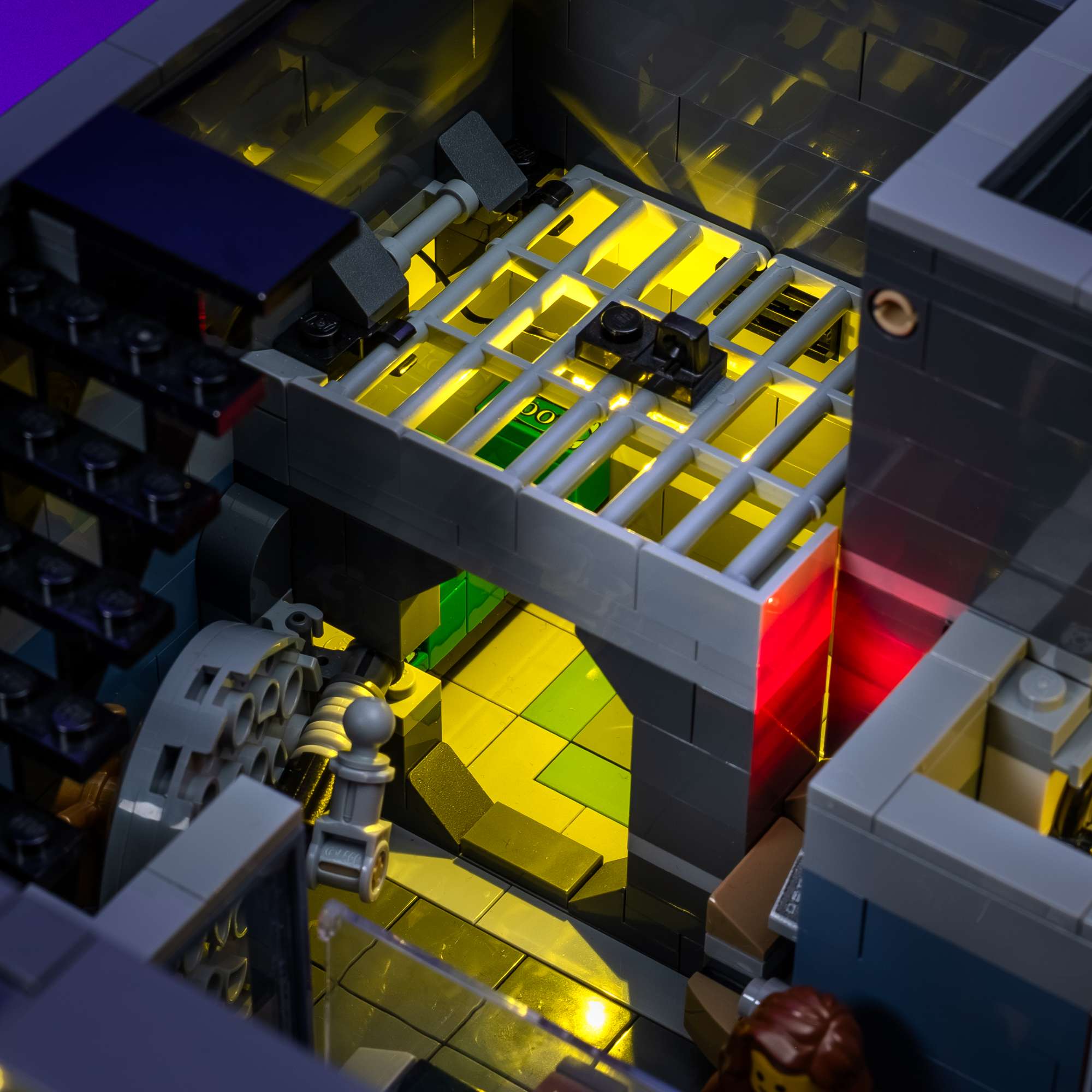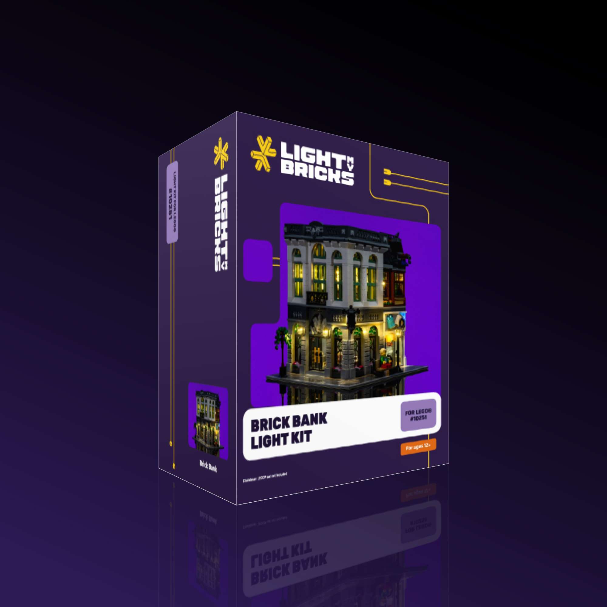 Add timeless elegance to your modular street with a custom Light My Bricks™ Light Kit for the LEGO® Creator Expert Brick Bank 10251. Warm white lamp posts and glowing lanterns illuminate the exterior, while cool interior lighting showcases every architectural detail inside. The chandelier in the grand foyer sparkles to life with micro string LEDs, while flickering lights in the fireplace and desk lamps add warmth and realism to the offices above. With flashing lights connecting the laundromat and the bank for storytelling flair, and Flux Touch Plates allowing for easy level removal, this kit transforms the Brick Bank into a radiant centrepiece of your LEGO® city.