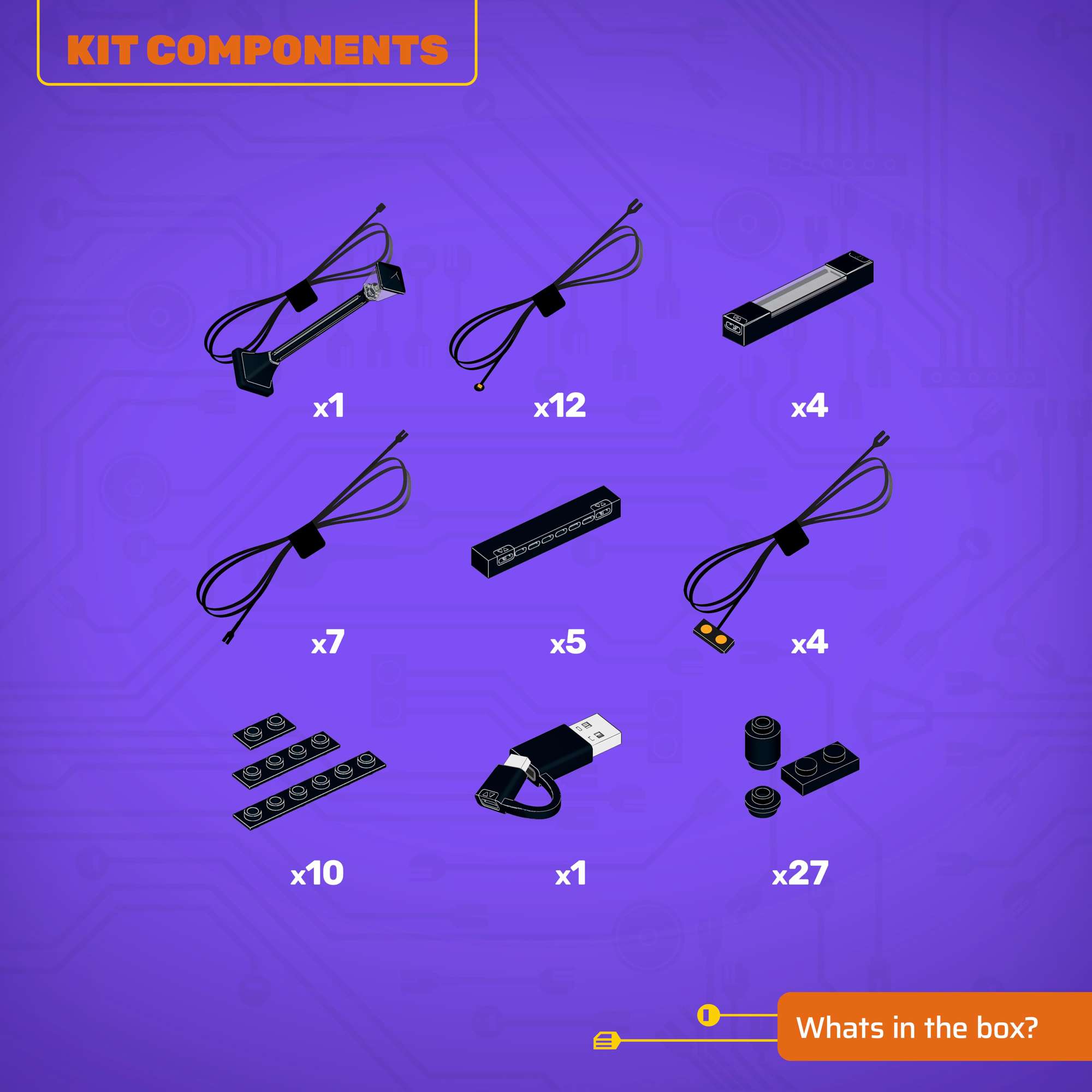 - All component casing and housing has been designed to connect seamlessly onto the LEGO® stud system, with LEGO® dimensional parts.