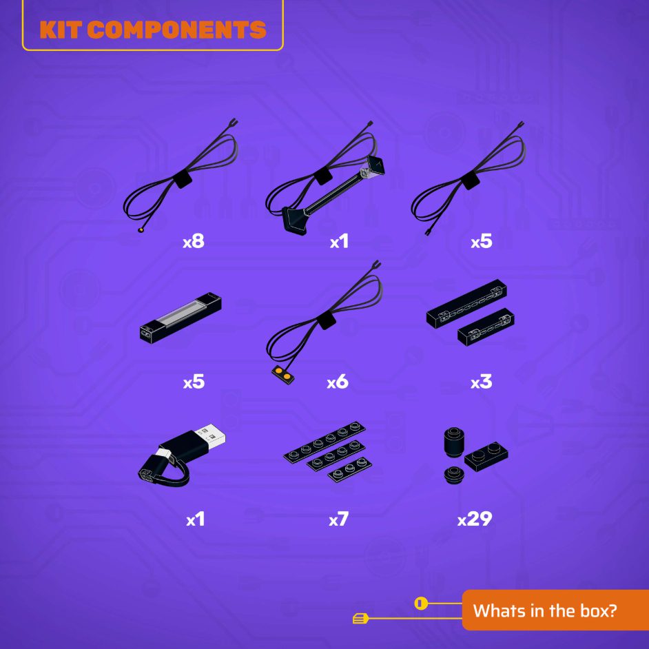 - All component casing and housing has been designed to connect seamlessly onto the LEGO® stud system, with LEGO® dimensional parts.