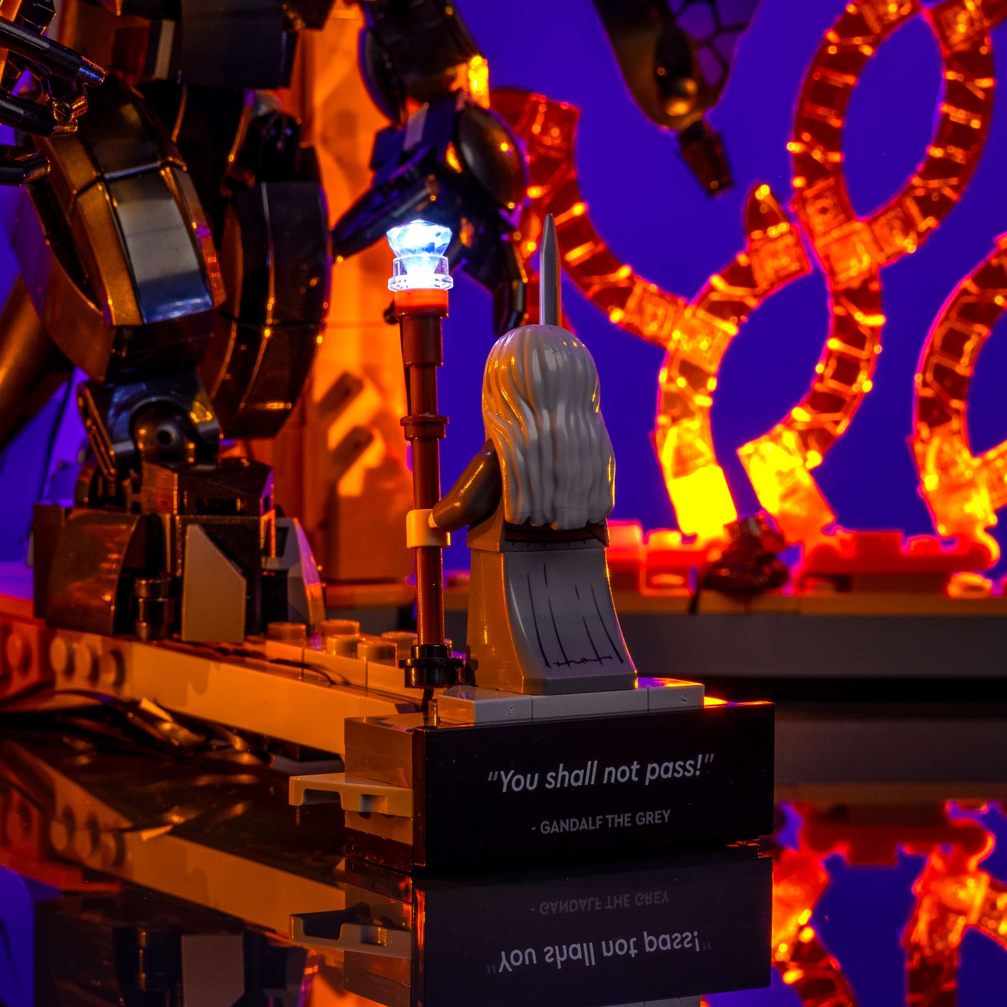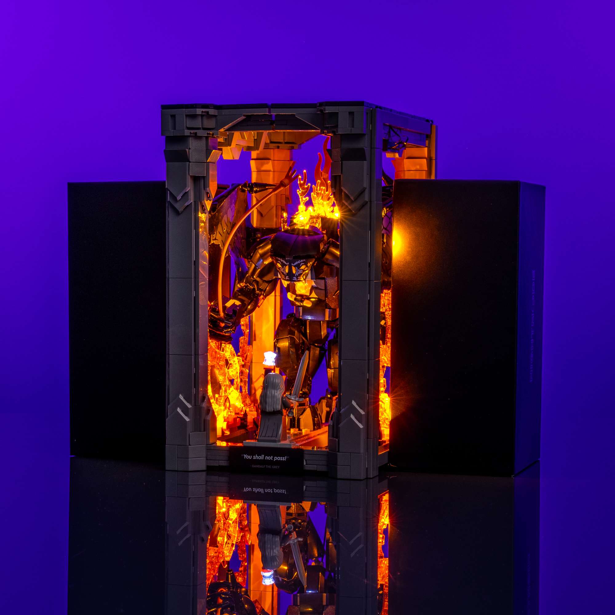 Relive the legendary standoff at the Bridge of Khazad-dûm with an immersive Light Kit by Light My Bricks™ for the LEGO® The Lord of the Rings: Balrog™ Book Nook 10367. The depths of the Mines of Moria glow with six Large Flickering Orange Lights, evoking the fiery spread of Durin’s Bane as the ancient evil awakens. The Balrog itself blazes to life with a flickering array of LEDs that highlight its terrifying presence, while Gandalf’s staff pulses with a Cool White light, capturing the exact moment he makes his iconic last stand—“You shall not pass!” This dramatic lighting kit brings cinematic depth and emotional power to your display, turning your shelf into a moment of Tolkien legend.