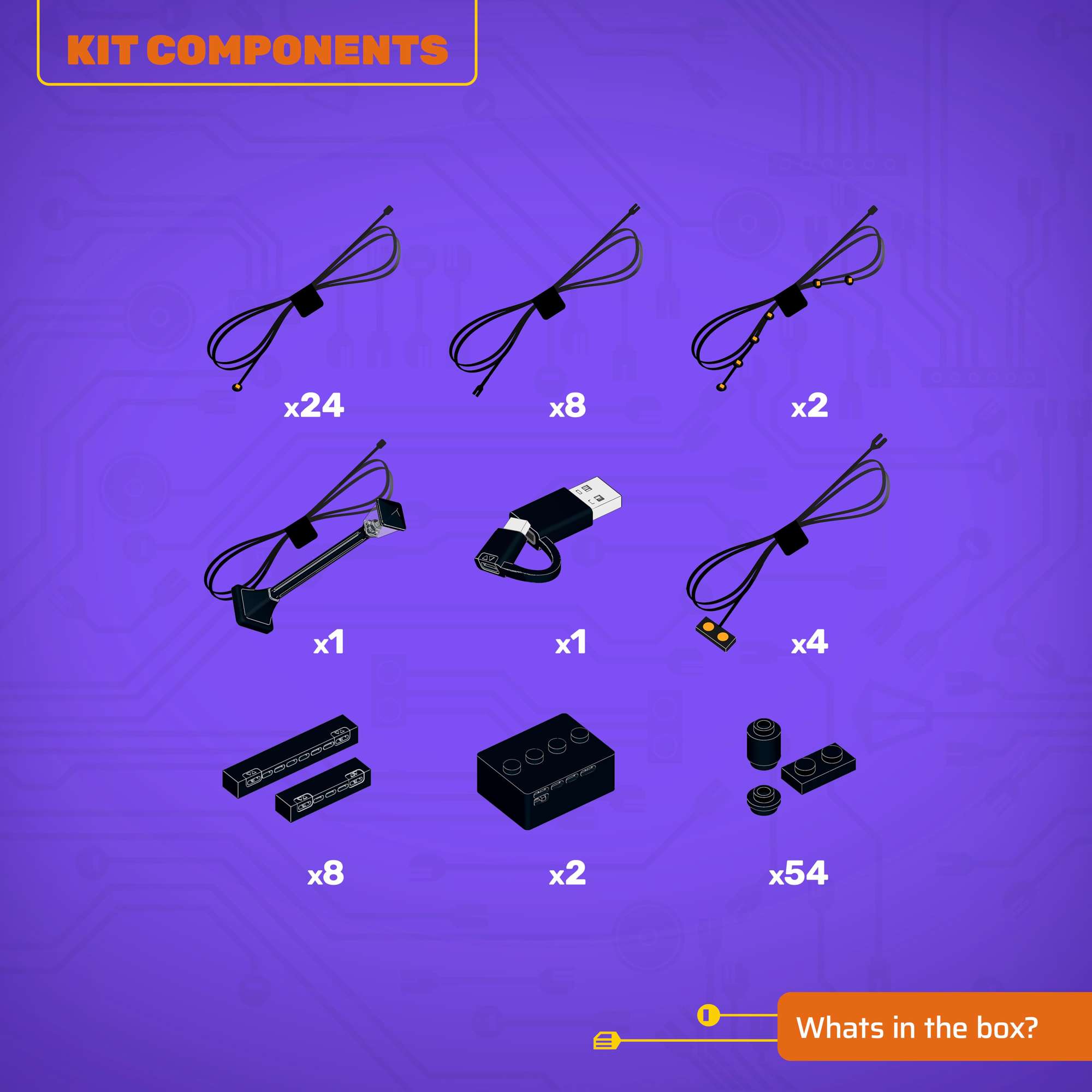 All component casing and housing has been designed to connect seamlessly onto the LEGO stud system, with LEGO dimensional parts.