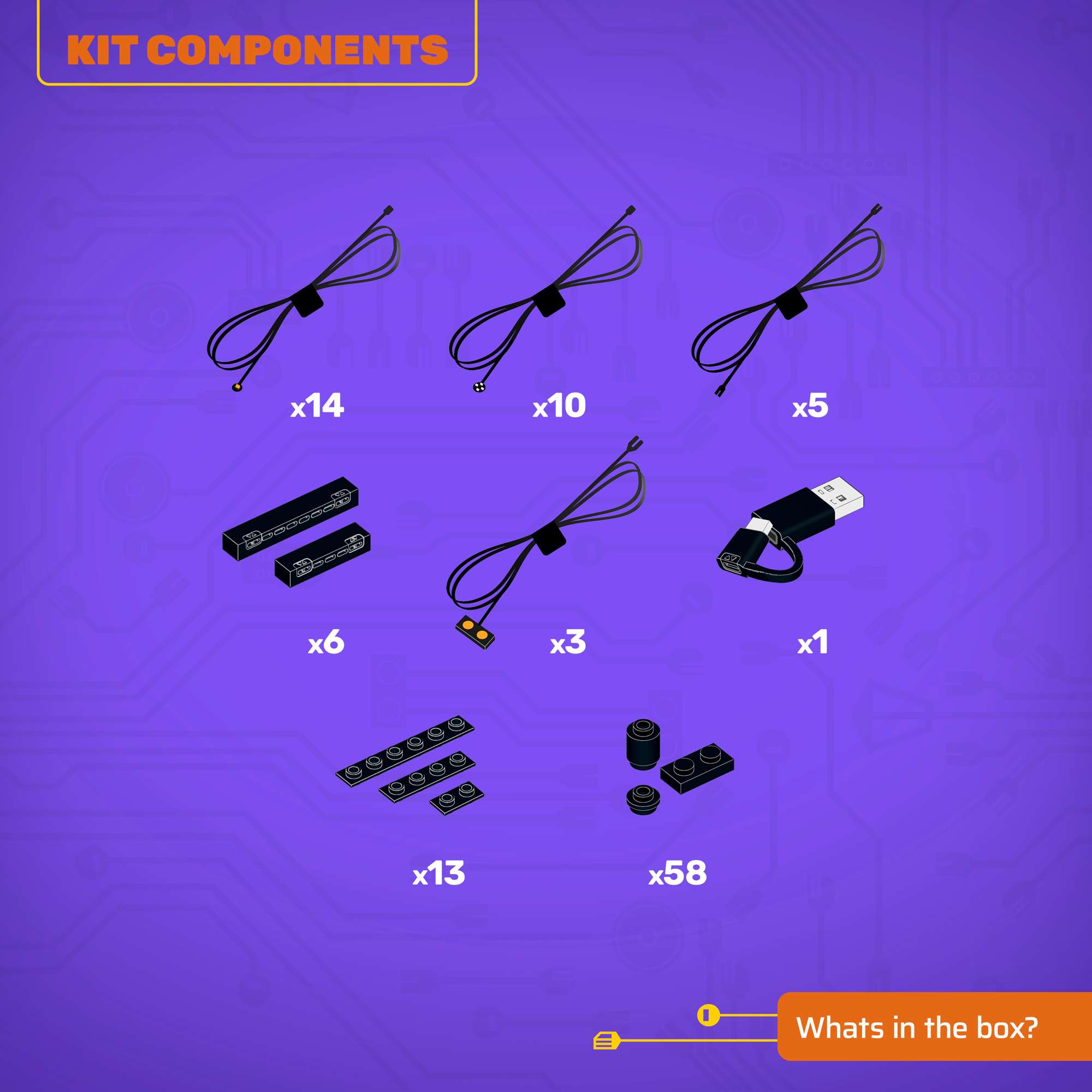 - All component casing and housing has been designed to connect seamlessly onto the LEGO® stud system, with LEGO® dimensional parts.