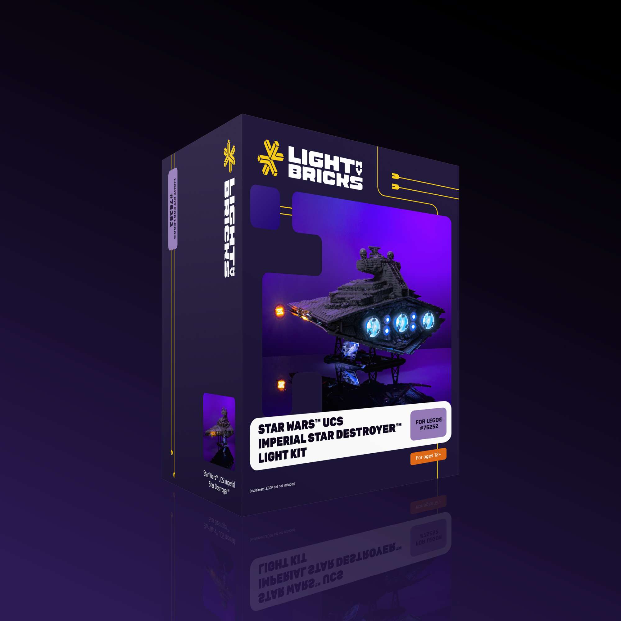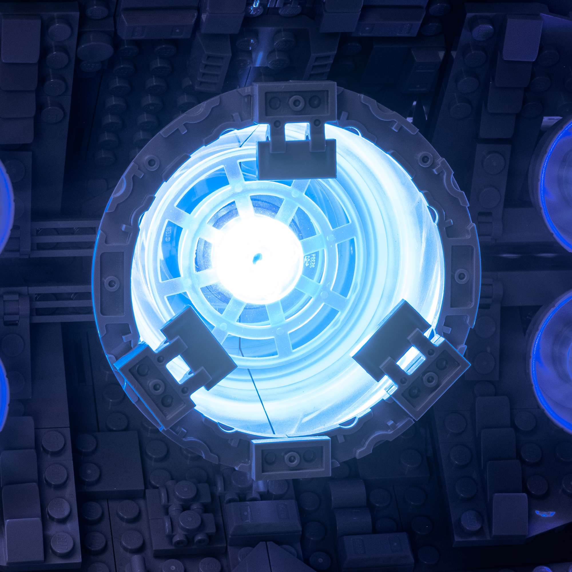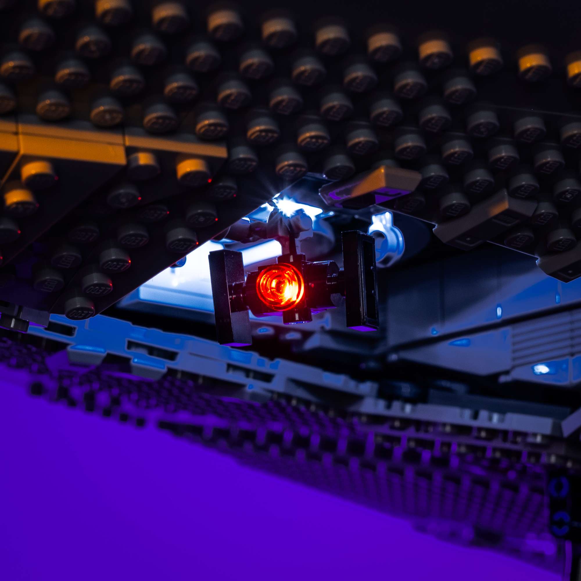Illuminate the might of the Empire with a Light My Bricks™ custom Light Kit for the LEGO® Star Wars™ UCS Imperial Star Destroyer™ 75252, meticulously designed for film-accurate brilliance. The powerful Cool White Solar Lights bring the colossal main engines to life, while the smaller engines glow with precision-mounted Astro Lights behind translucent blue elements. Across the ship’s body, 25 strategically placed Cool White LEDs simulate the subtle activity of the Star Destroyer’s vast interior. With a glowing Micro Tantive IV, red-lit TIE fighter, and a spotlight on the display plaque, this lighting kit transforms your build into the ultimate galactic showpiece.