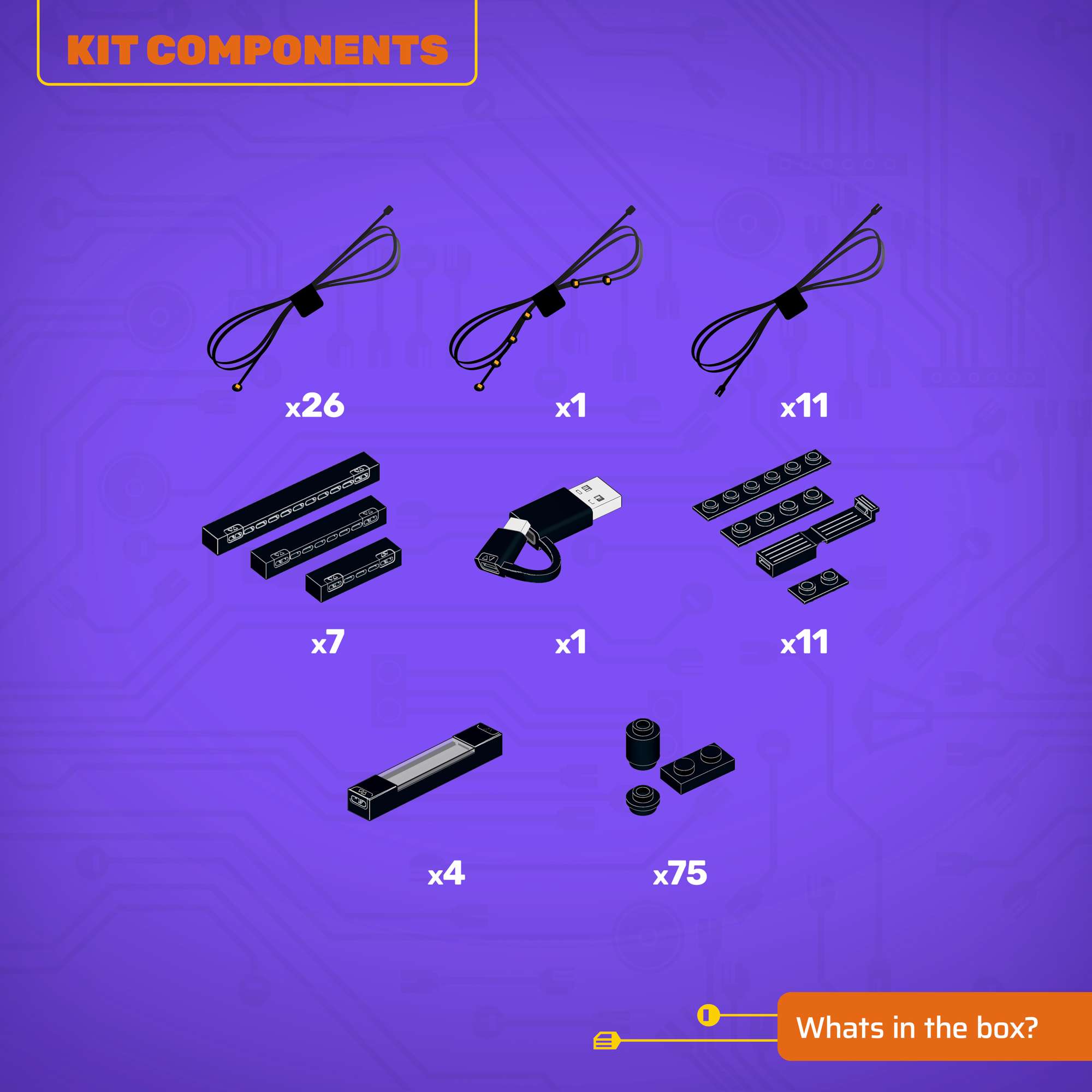 - All component casing and housing has been designed to connect seamlessly onto the LEGO® stud system, with LEGO® dimensional parts.