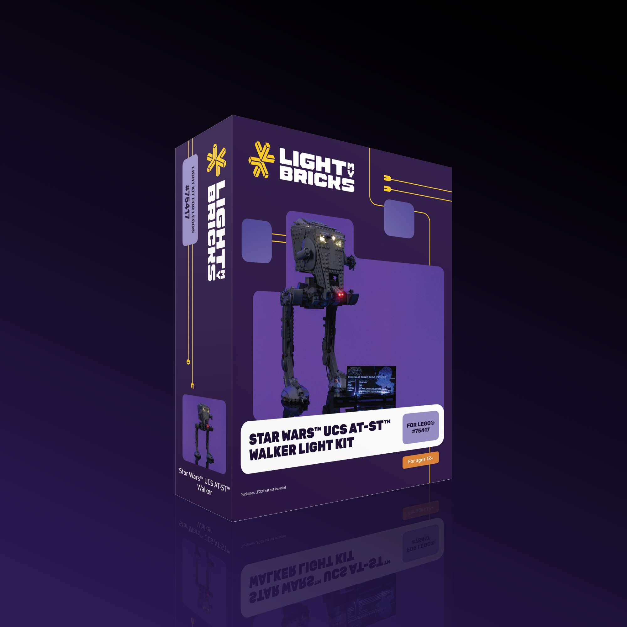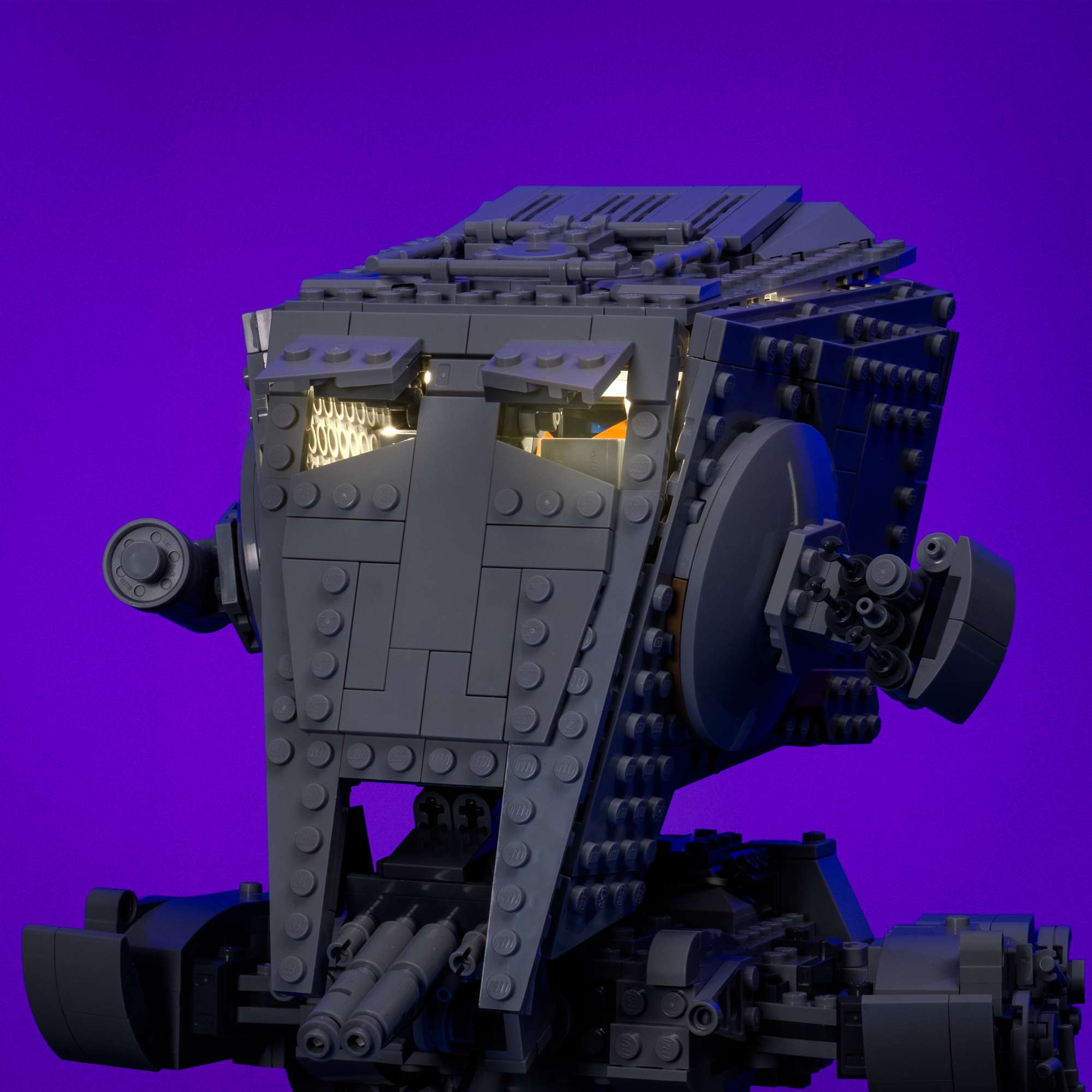 Bring the Battle of Endor to life with a custom Light My Bricks™ Light Kit for the LEGO® Star Wars™ AT-ST™ Walker 75417, designed with screen-accurate detail from Return of the Jedi. The chin-mounted twin blaster cannons fire to life with glowing red effects, while the cockpit interior is bathed in crisp white lighting for an authentic look. Two cool white spotlights shine up from the display stand, highlighting the walker in all its Imperial might. Perfect for display, this light kit transforms the AT-ST into a true centerpiece of any Star Wars collection.