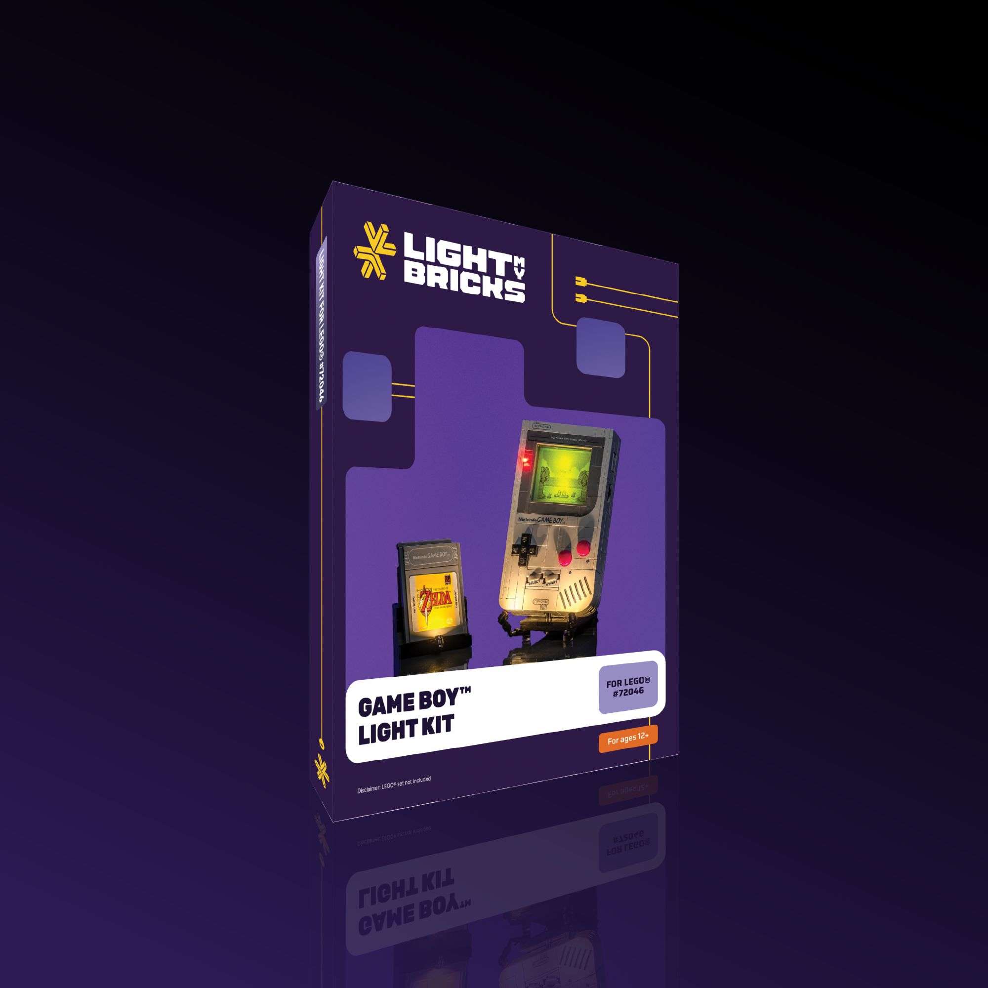 Celebrate a handheld gaming icon with the Light My Bricks™ light kit for LEGO® Game Boy™ 72046, turning this nostalgic build into a display-worthy tribute for Nintendo fans and collectors. Responding to fan requests, this design treats the model like a museum piece, with two brick-built spotlights fitted with large warm white Astro lights washing the Game Boy in a soft, gallery-style glow, while an additional warm white spotlight lifts the game cartridge into focus. A micro red Astro Light replaces the power indicator, recreating the tiny, thrilling spark of seeing your Game Boy flicker to life. Behind the screen, two cleverly mounted light green Astro lights don’t just illuminate – they restore the legendary green hue of the original 1989 display, so the handheld feels powered up without breaking authenticity. The result is a clean, characterful centerpiece that will stand out in any gaming room, office shelf, or LEGO® Nintendo® display.