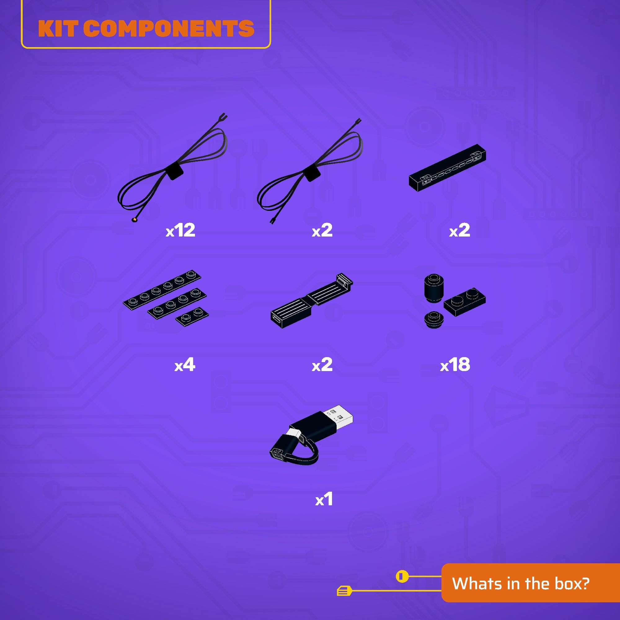 - All component casing and housing has been designed to connect seamlessly onto the LEGO stud system, with LEGO dimensional parts.