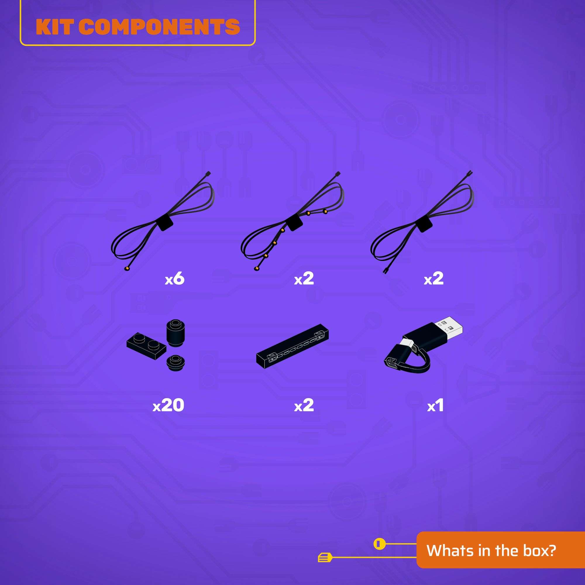 - All component casing and housing has been designed to connect seamlessly onto the LEGO stud system, with LEGO dimensional parts.