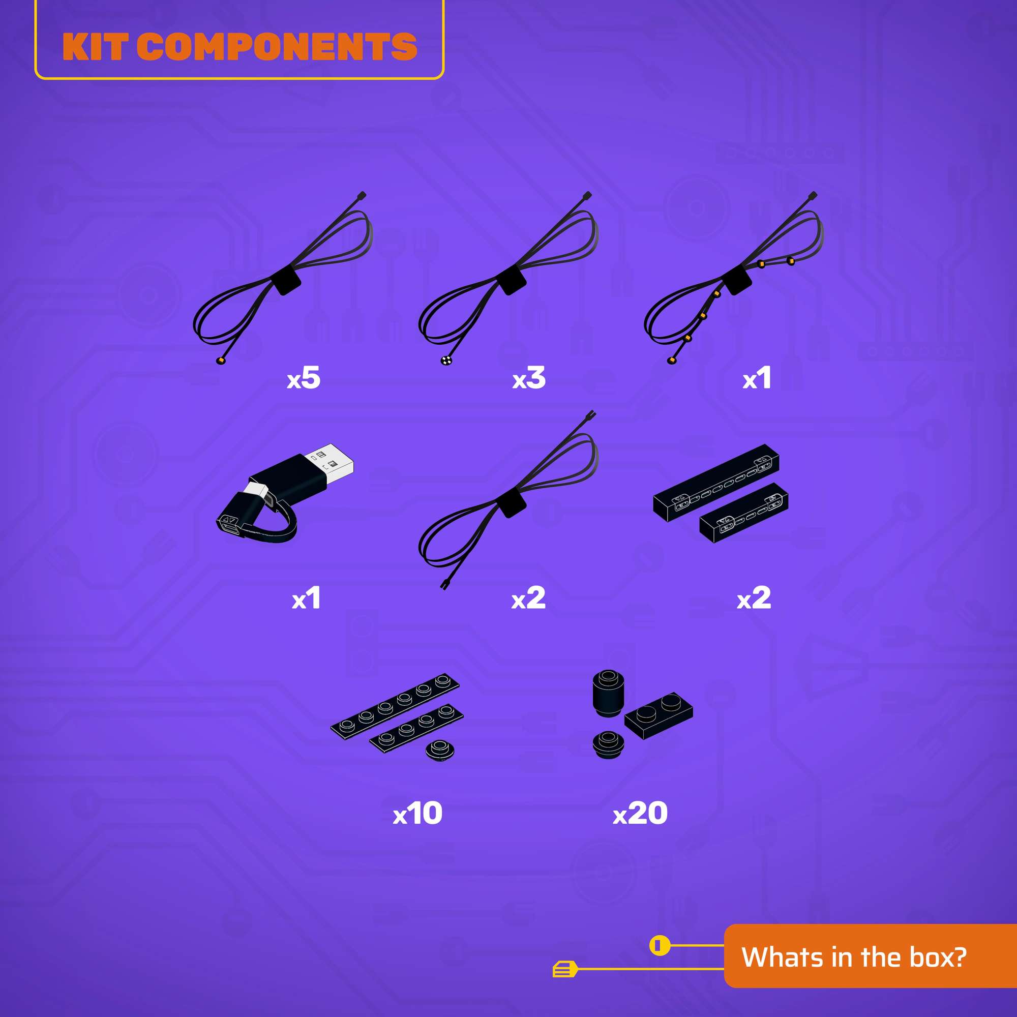 - All component casing and housing has been designed to connect seamlessly onto the LEGO stud system, with LEGO dimensional parts.