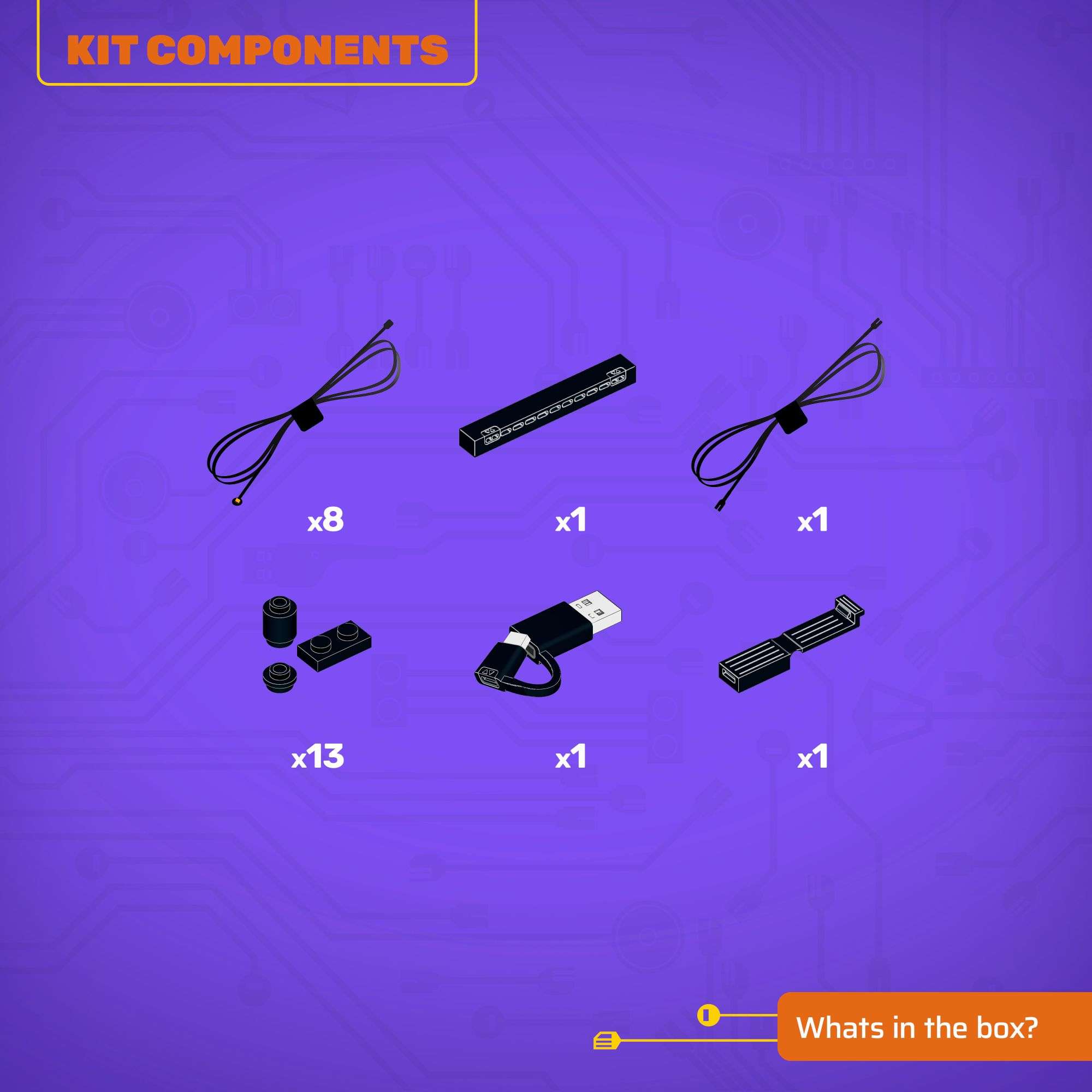 - All component casing and housing has been designed to connect seamlessly onto the LEGO stud system, with LEGO dimensional parts.