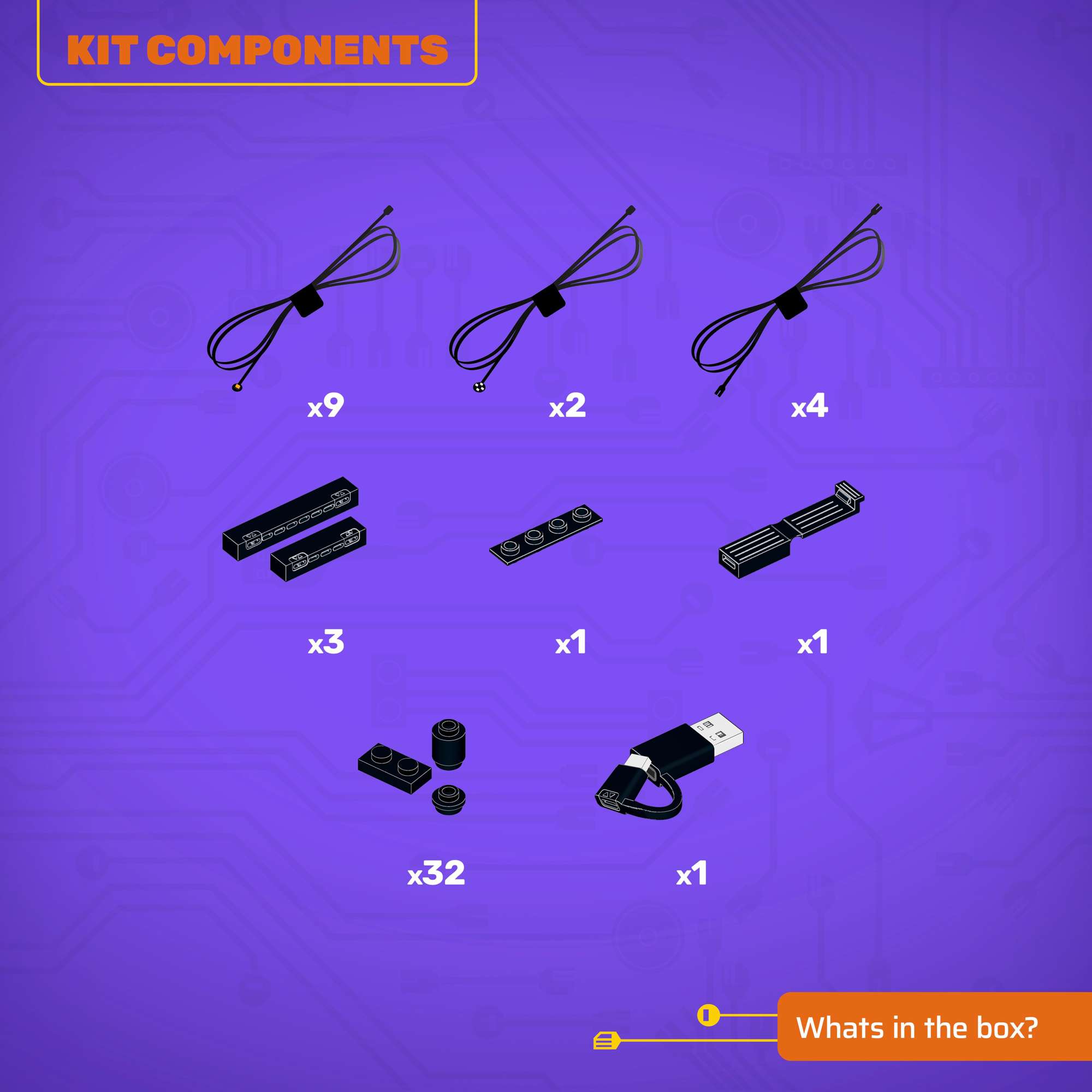 • All component casing and housing has been designed to connect seamlessly onto the LEGO stud system, with LEGO dimensional parts.