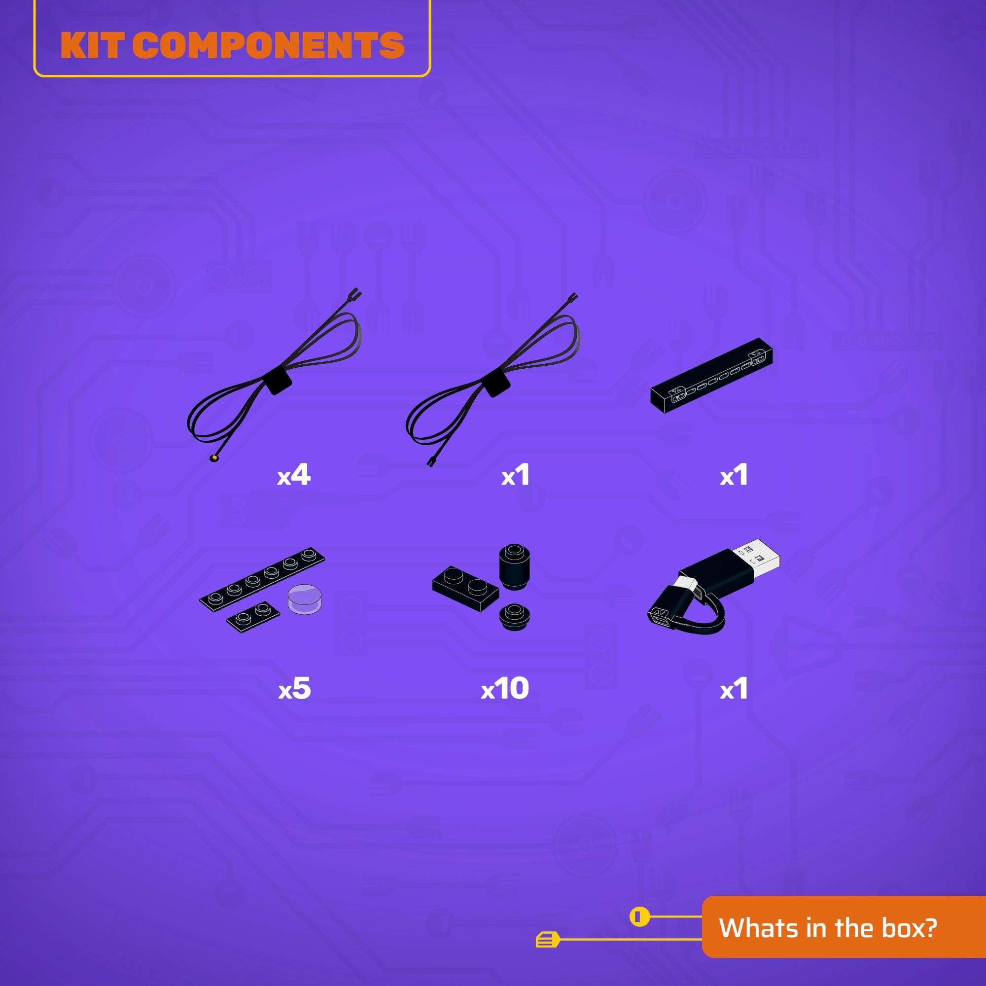 - All component casing and housing has been designed to connect seamlessly onto the LEGO stud system, with LEGO dimensional parts.