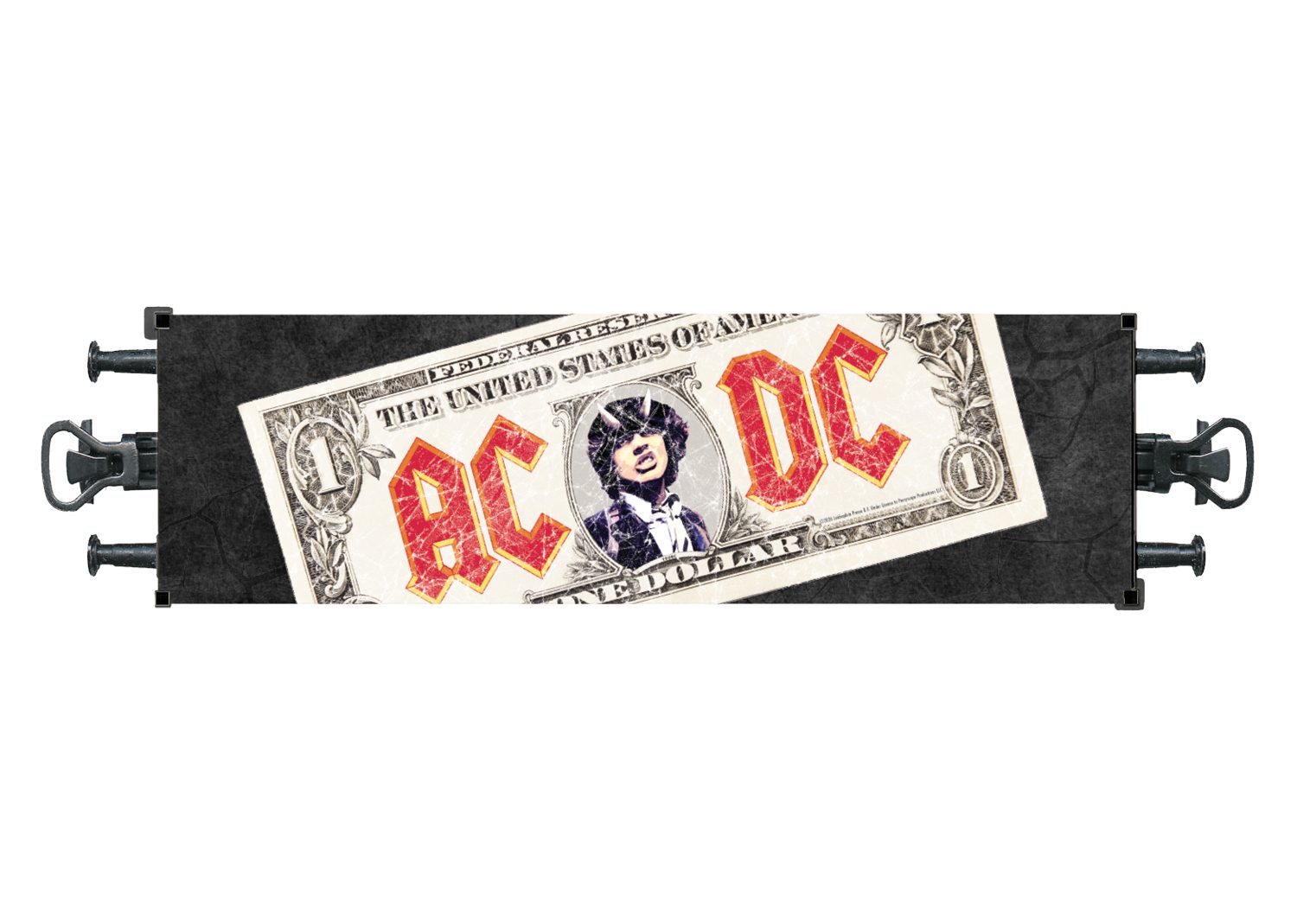 The container transport car features the familiar bank-note design from the AC/DC single “Moneytalks” from 1990.