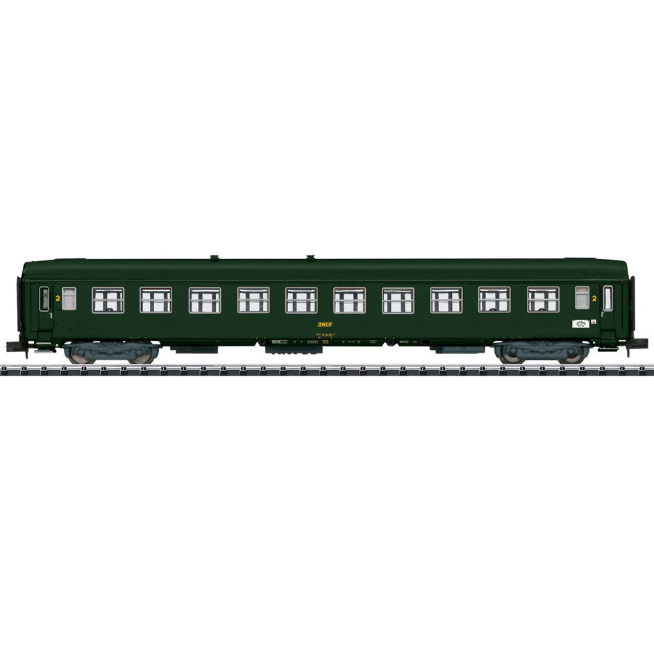 French State Railroad (Société Nationale des Chemins de Fer Français / SNCF), a type B 10 express train coach, 2nd class. The car looks as it did around 1970 on the train route “Nizza (Nice) – Paris”.