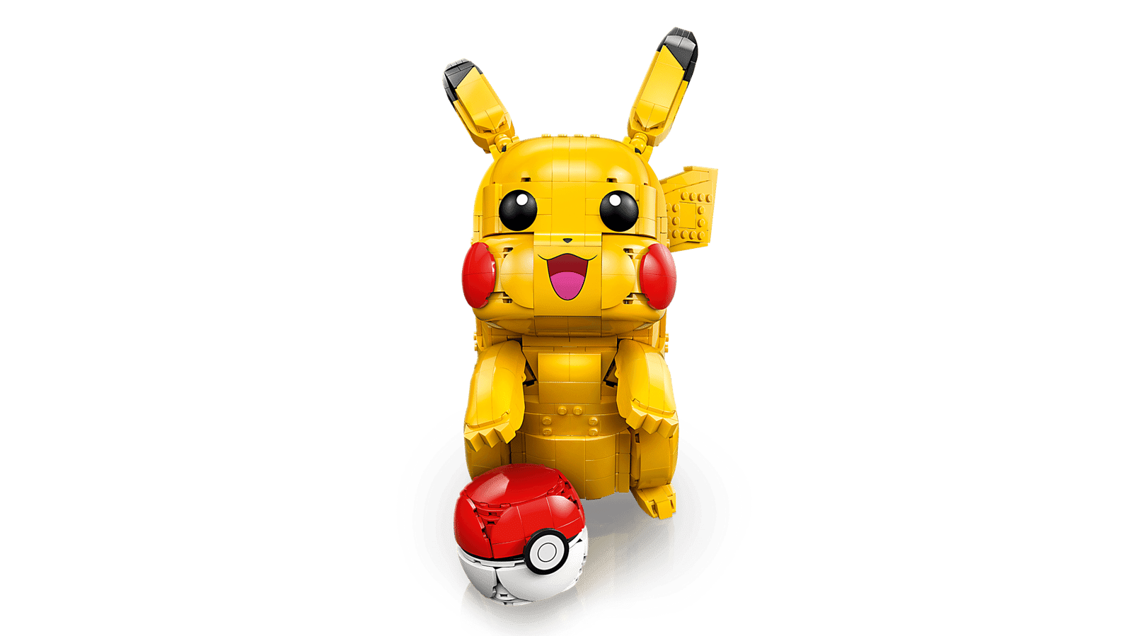 • DIMENSIONS – This 2,050-piece Pikachu gift of a Pokémon model figure with display stand measures over 13.5 in. (35 cm) tall, 10.5 in. (26 cm) wide and 15.5 in. (39 cm) deep