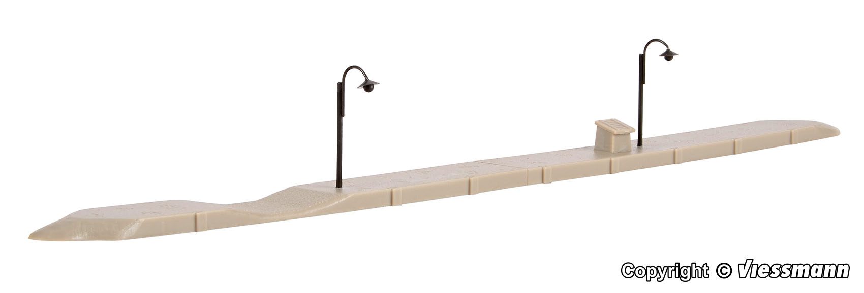 The platform perfectly fits the station Neuffen, item 49510. Dimensions: L 21,3 x W 1,5 x H 2,5 cm.