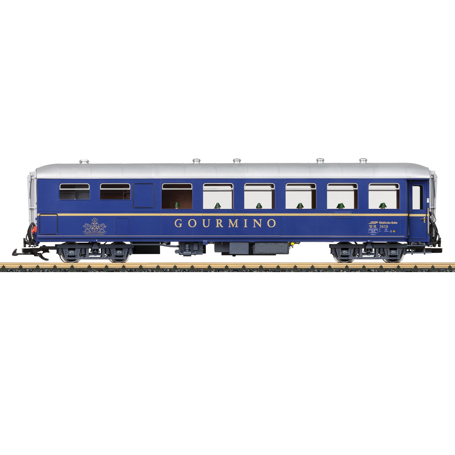 This dining car WR 3810 is used on the RhB for the providing gastronomical service to passengers. It is prototypically painted and lettered for Era VI. It has interior details, interior lighting, and doors that can be opened.