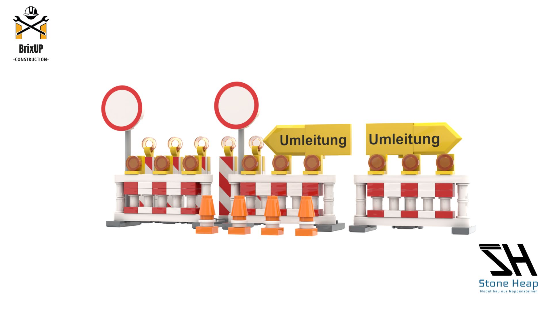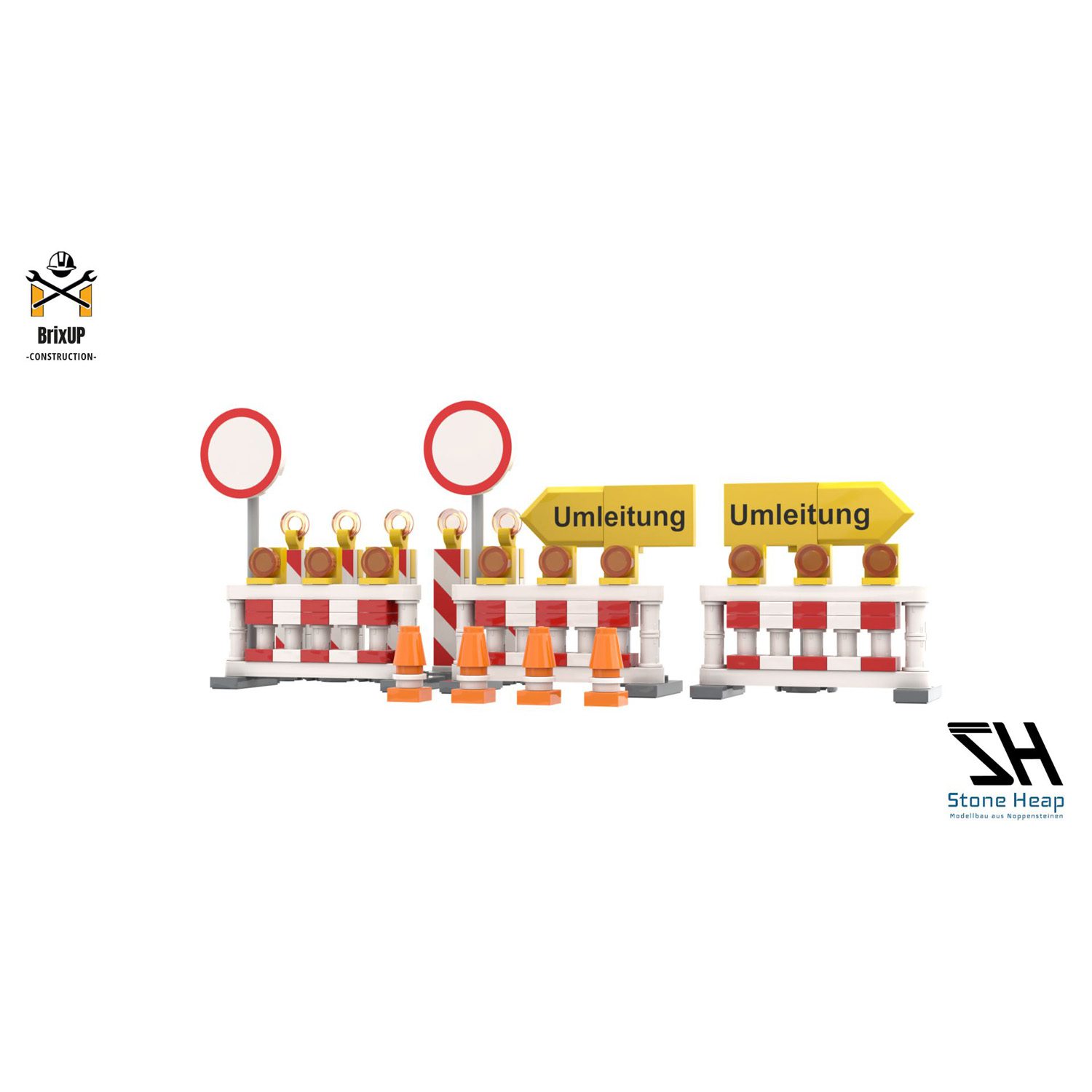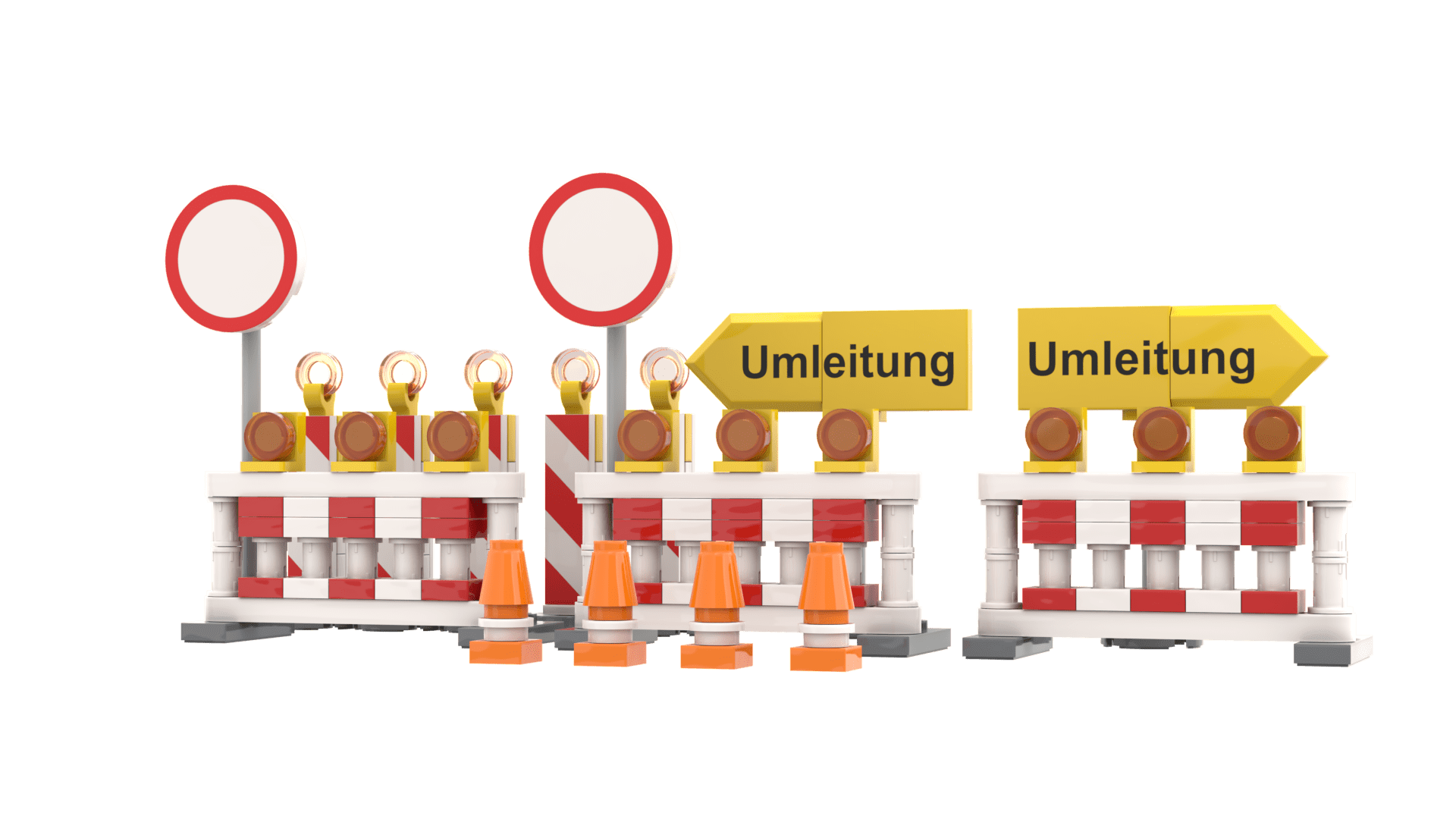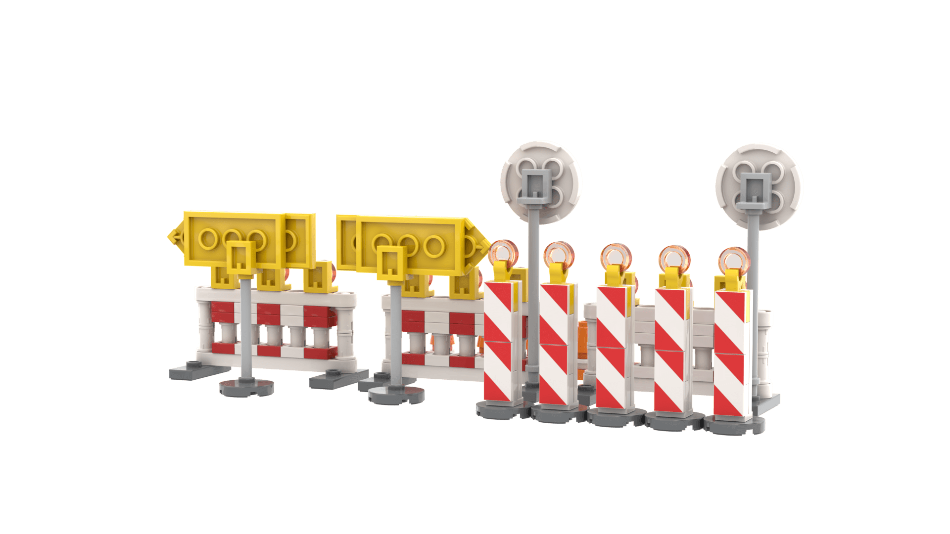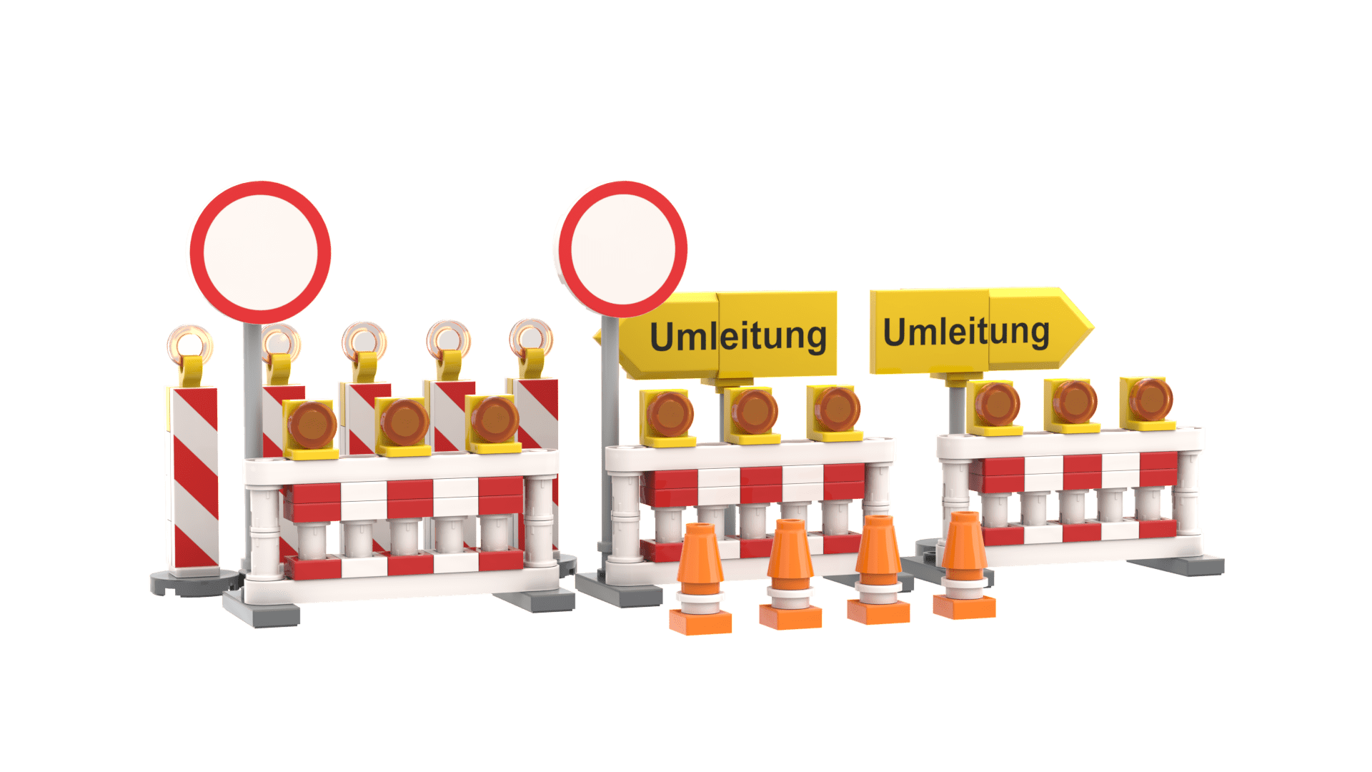 The road barriers as a building block model bring an authentic construction site atmosphere. With barricades, traffic signs, and warning lights, they are the perfect addition to any construction or roadwork scene.