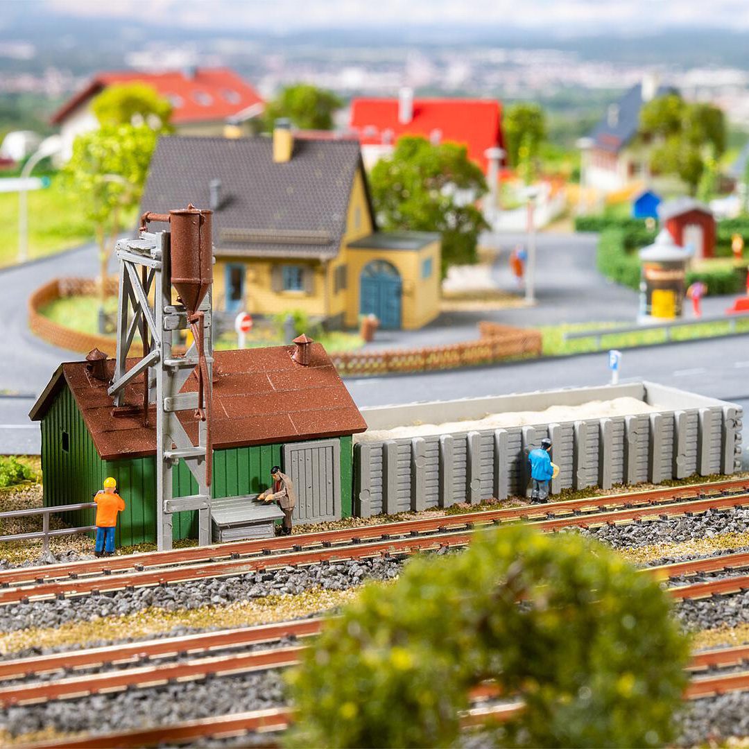This charming model of a small sanding facility with a green house brings real railway flair to your layout! In reality, sanding facilities are used to supply locomotives with dry sand, which increases traction on the rails. An ideal way to bring a little realism to your model railway!