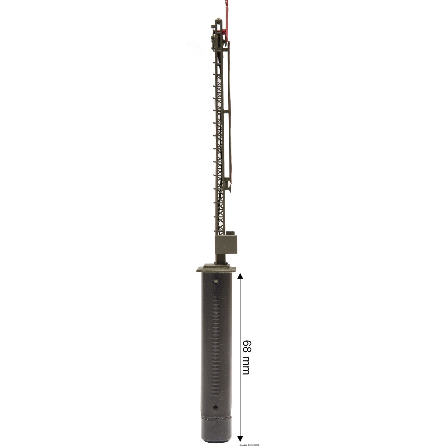 With filigree latticed brass mast and authentic varnishing, printed signal arms and underfloor drive unit with integrated automatic train control. Maintenance free due to LED lighting. Signal pictures Hp0 and Hp1. Height: 103 mm.