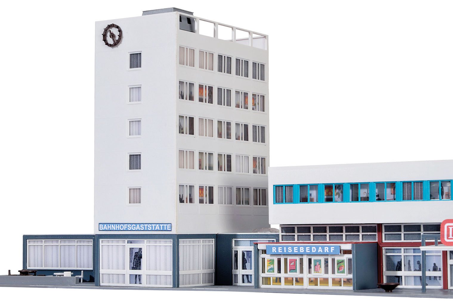 • This station is equipped with the useful and flexible floor interior lighting item 6045 from Viessmann. So unlimited possibilities for individual illumination of buildings with big window facades are offered.