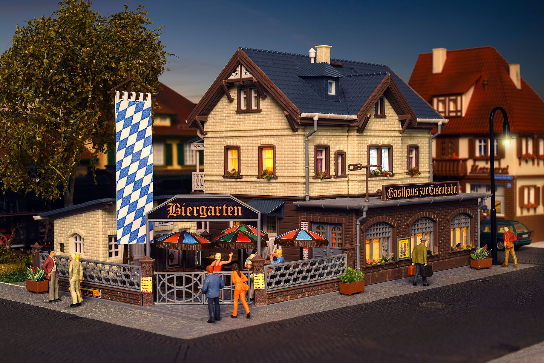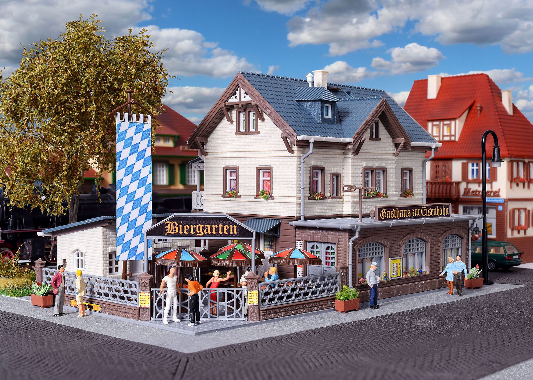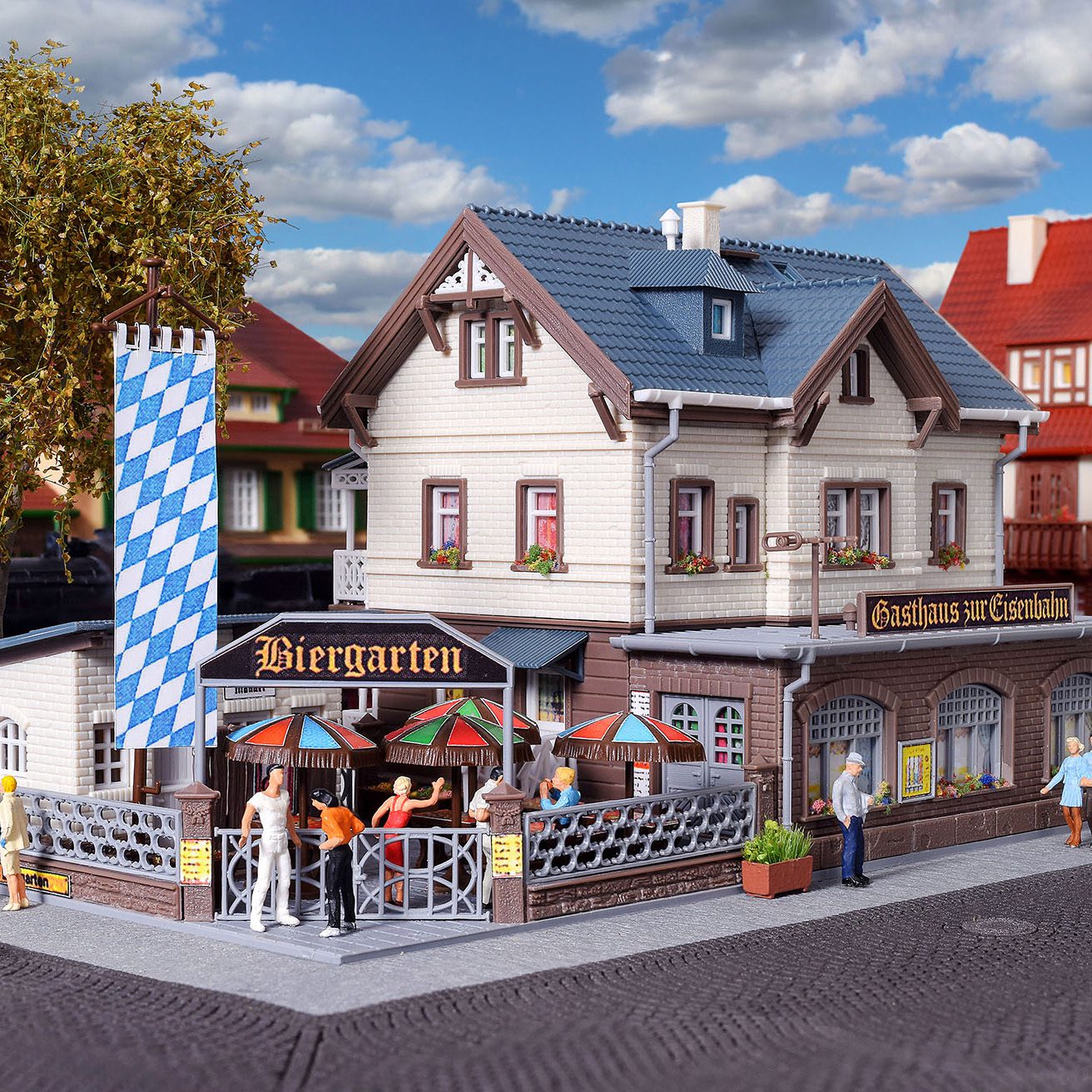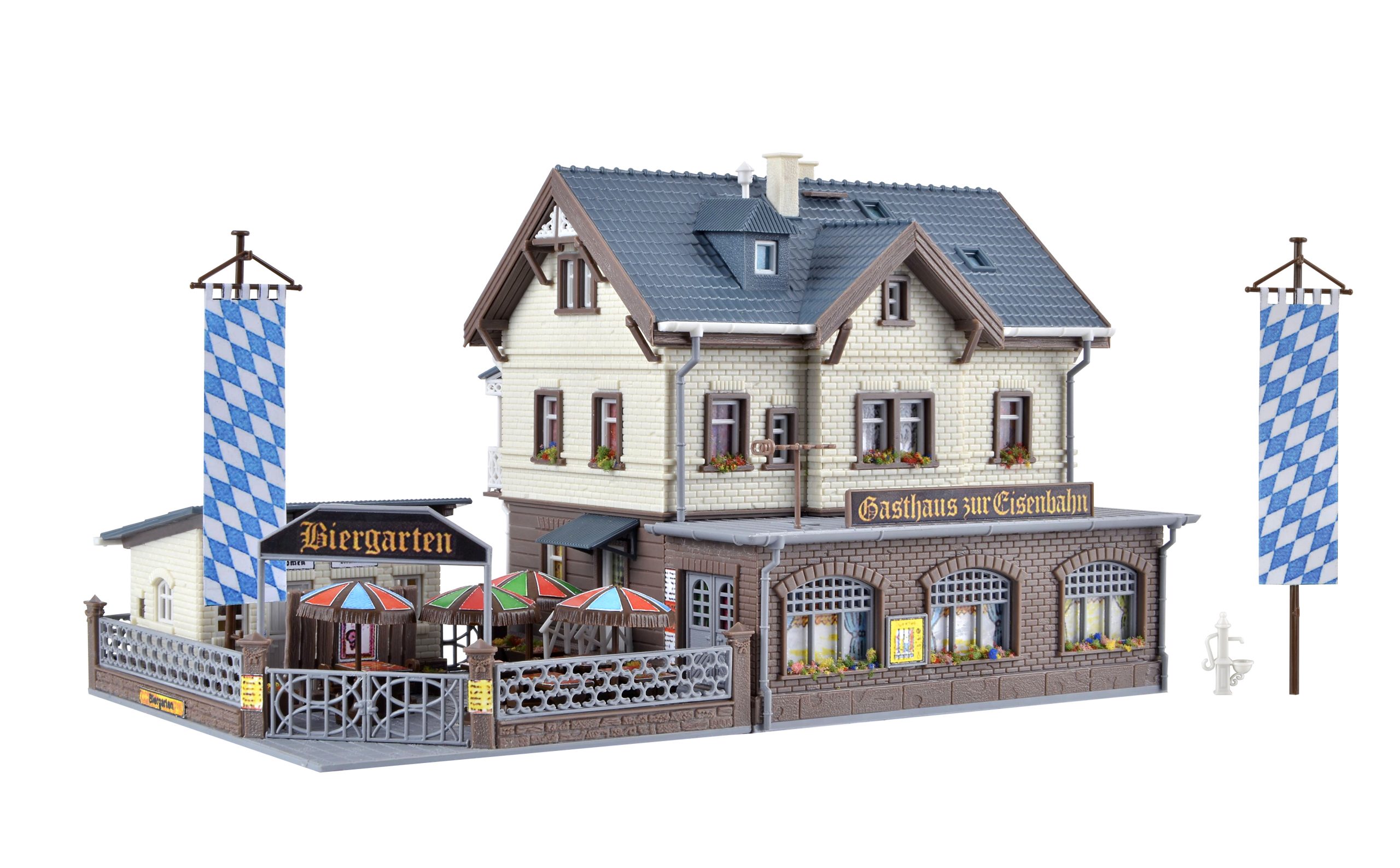 A model with beer garden. Dimensions: L 20 x W 12 x H 11,5 cm.