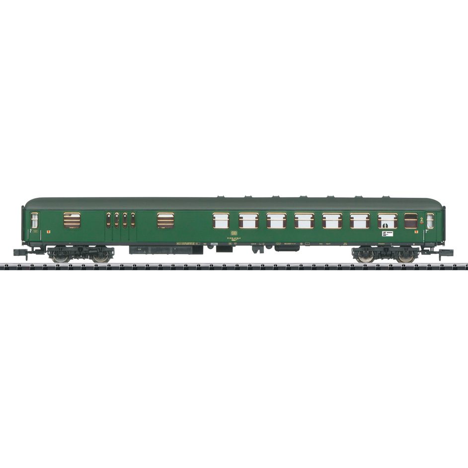German Federal Railroad (DB) type BDüms 273 express train passenger car, 2nd class with a baggage compartment, chrome oxide green basic paint scheme. The car looks as it did around 1973. Car route Nürnberg – Heilbronn – Mannheim.
