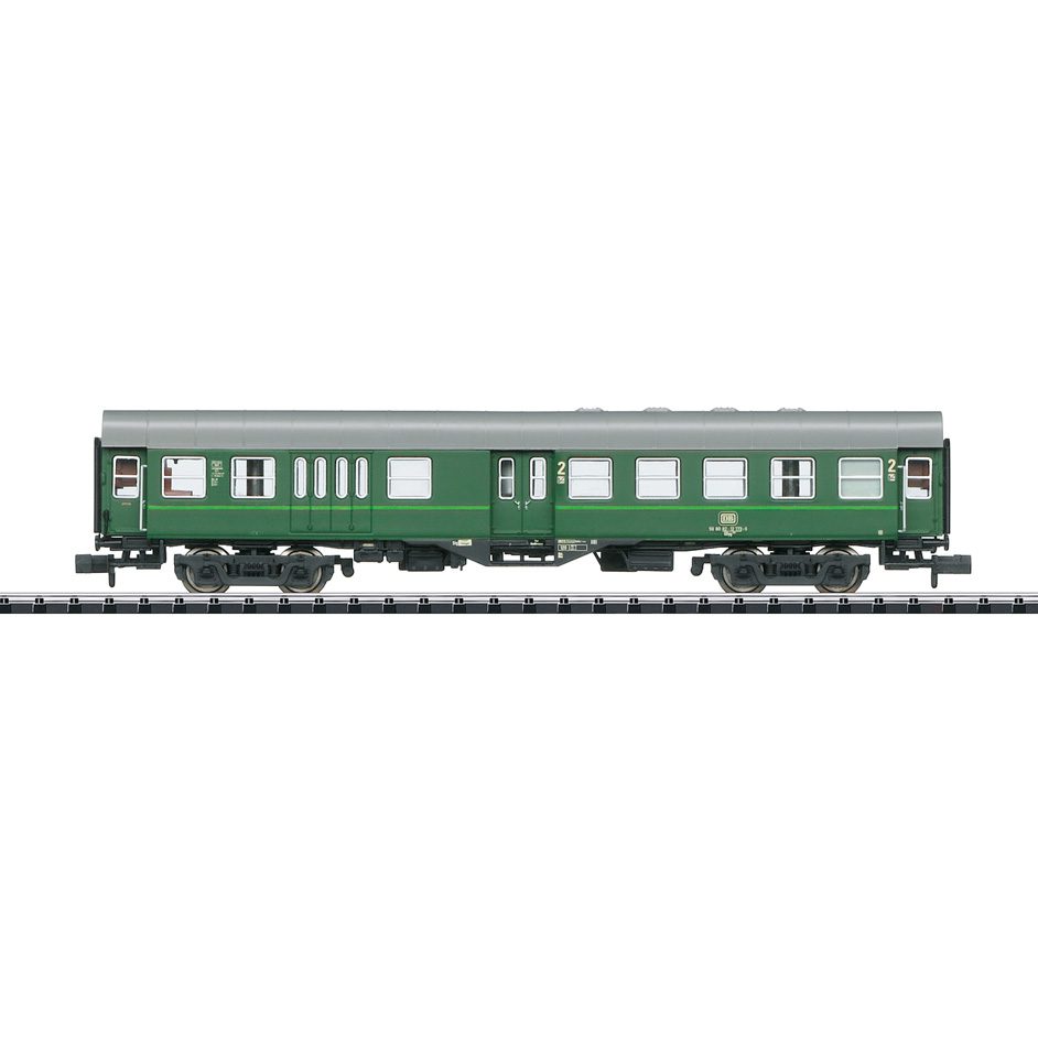 German Federal Railroad (DB) type BDyg 532 four-axle “Rebuild” car, 2nd class with a baggage area. Version around 1984 in chrome oxide green paint scheme for use on the Allgäu-Zollern Line.