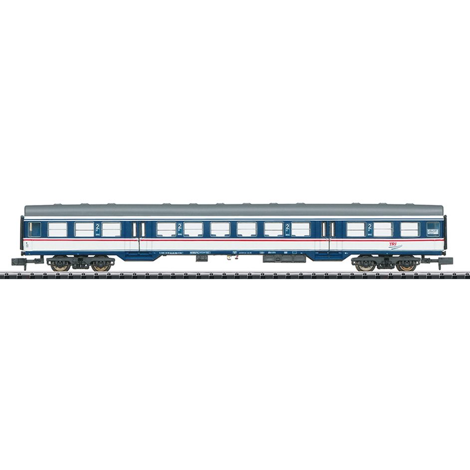 Train Rental, Inc. (TRI) commuter car, 2nd class, (car number 50 80 22-35 956-8) with steeply pitched roof. The car looks as it did around 2021.