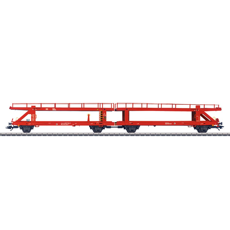 German Railroad, Inc. (DB AG), DB Cargo Logistics, Inc., Kelsterbach, Germany, type Laaeks 553.1 double auto transport car. Traffic red basic paint scheme. The car looks as it did around 2017.
