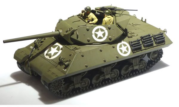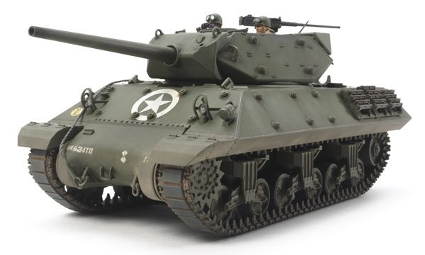 The famed Tamiya 1/35 Military Miniature Series welcomes the first major U.S. tank destroyer – the M10 – into its ranks. This versatile AFV was developed largely to give U.S. forces a potential counter to the German armor tactics which proved successful in the early stages of WWII. It utilized the successful M4A2 Sherman chassis with diesel powerplant, and mounted the 76.2mm gun in an open-top rotating turret; the hull featured extensive use of sloped armor, kept thin so as not to hinder maneuverability. Bosses were used on the turret and hull to facilitate the affixation of additional armor. Around 5,000 M10s were manufactured between September 1942 and December 1943, and it featured in action across North Africa and western Europe, its 3-inch gun and excellent maneuverability making it an asset for Allied forces.