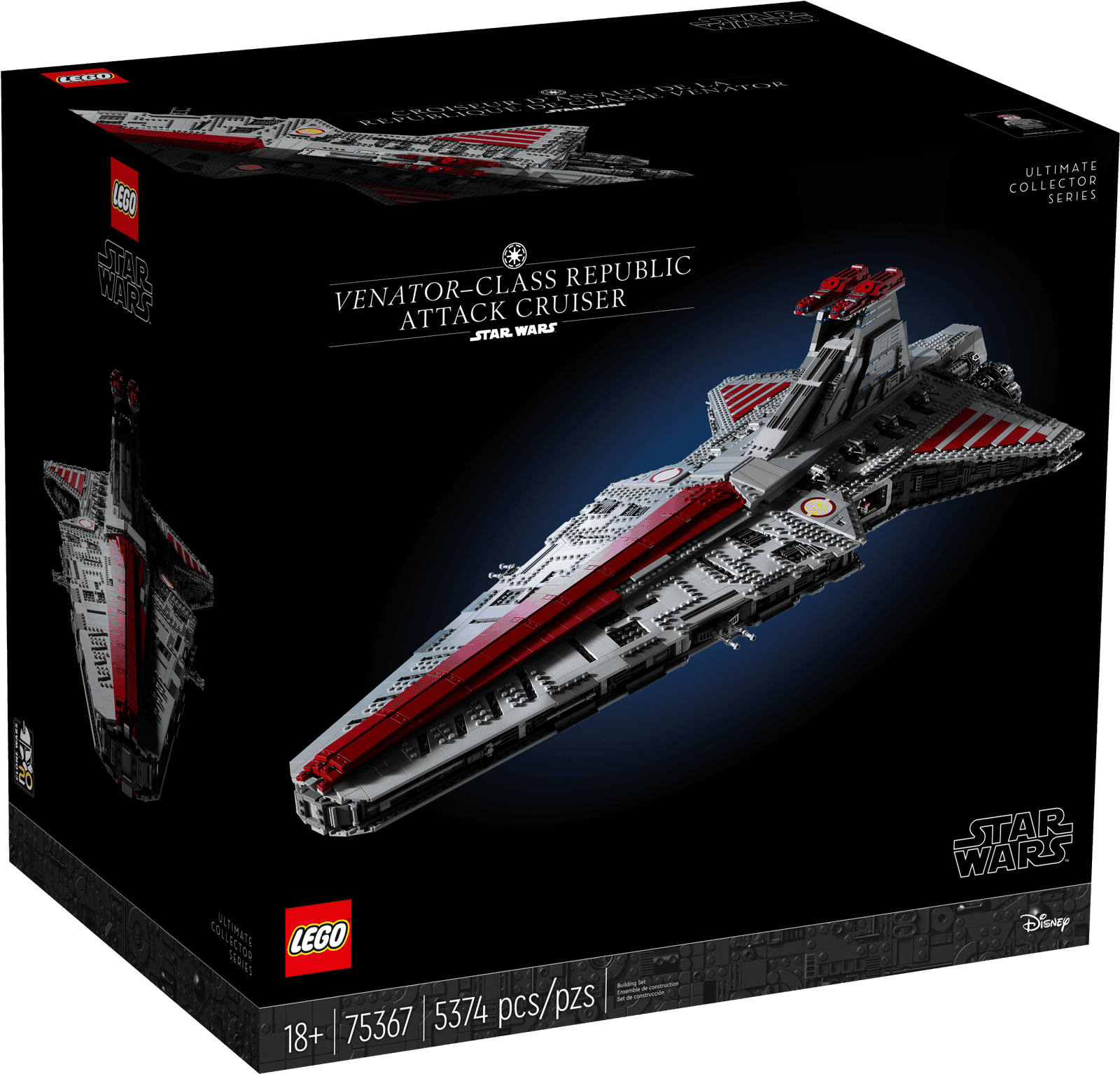 • The Venator-Class Republic Attack Cruiser™ (75367) – Relive classic battles from the Clone Wars era as you construct this LEGO® Star Wars™ Ultimate Collector Series build-and-display model